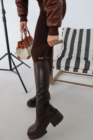 Sweter golf INKO pasy - beżowo-czekoladowe