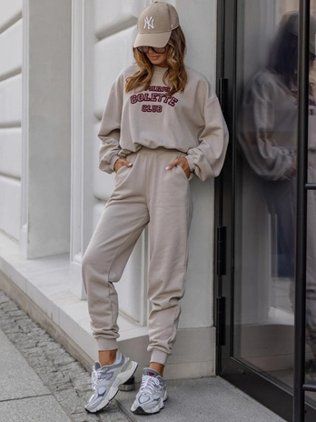 Spodnie dresowe ze ściągaczem beżowe By You T17069