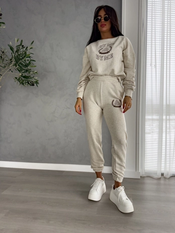 Sneakersy beżowe skórzane ze złotym łańcuszkiem I548
