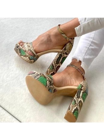 Sandały na słupku wzór wężowy Ria I568