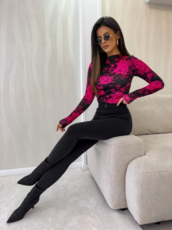 Bluzka SKIN print roses – czarno-fuksja C19240