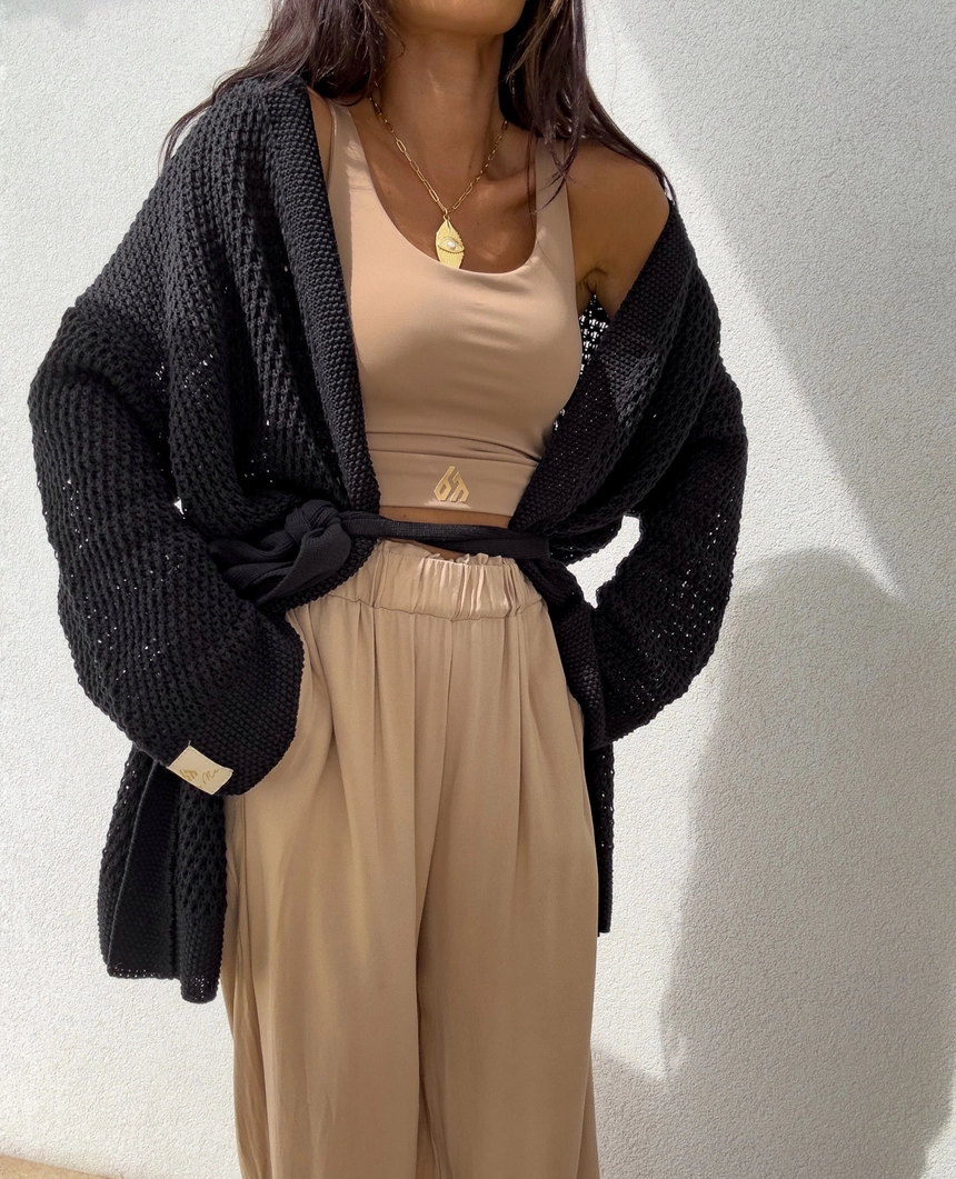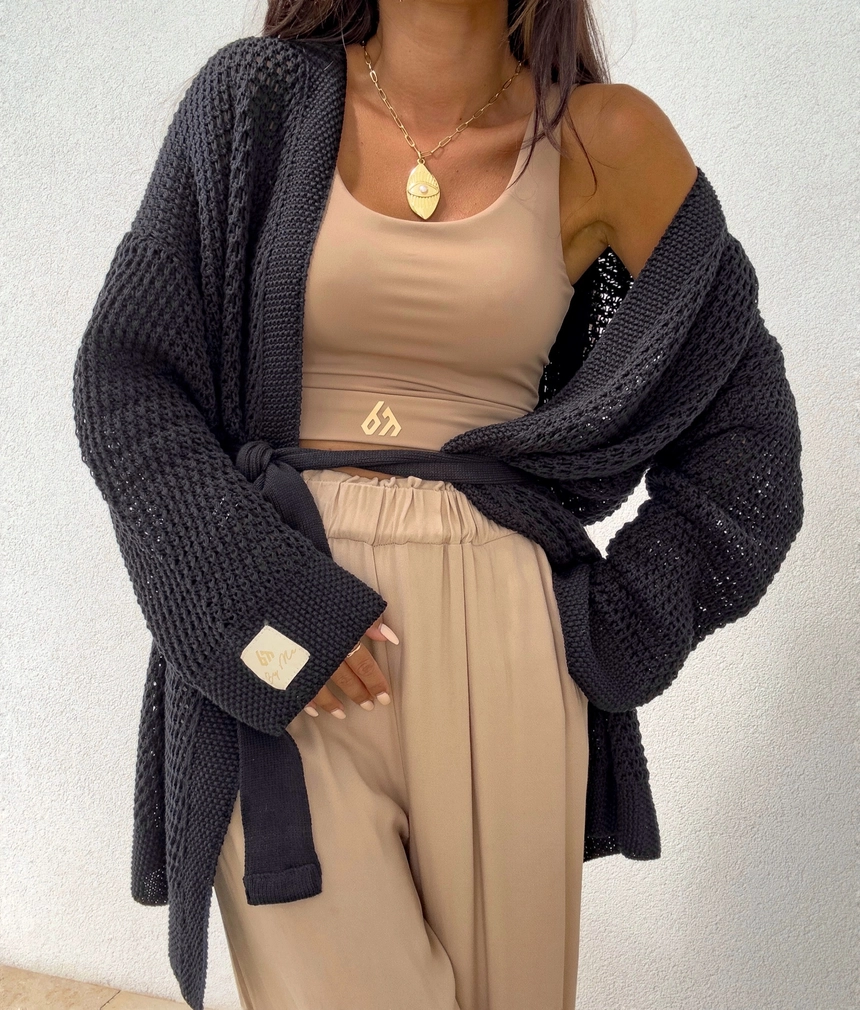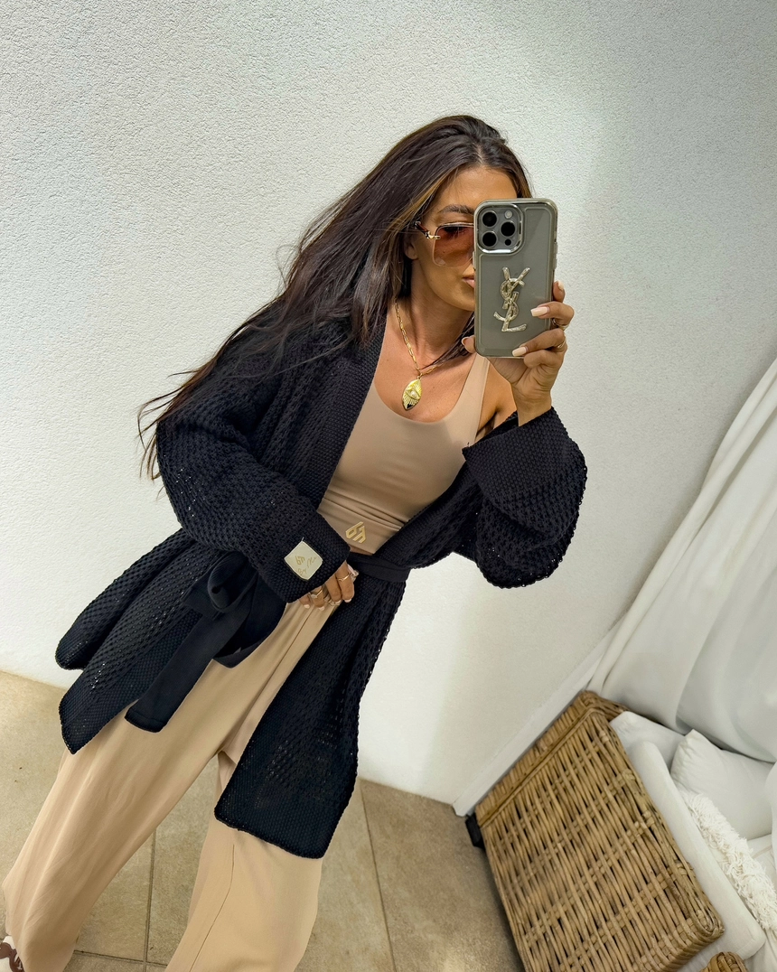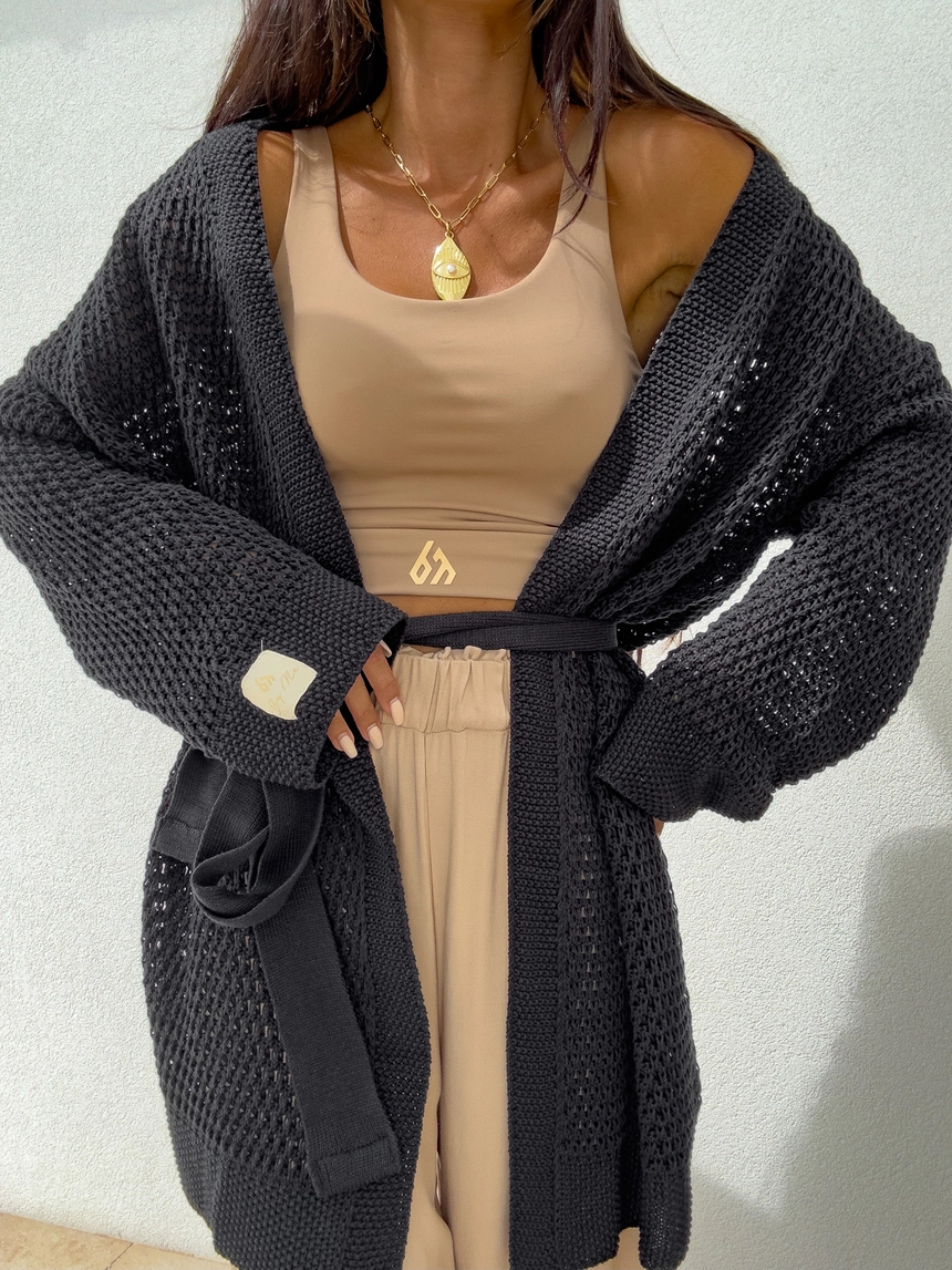 Narzutka plażowa na kostium i nie tylko. Może być to też kardigan. Naszywka z logo na rękawie.