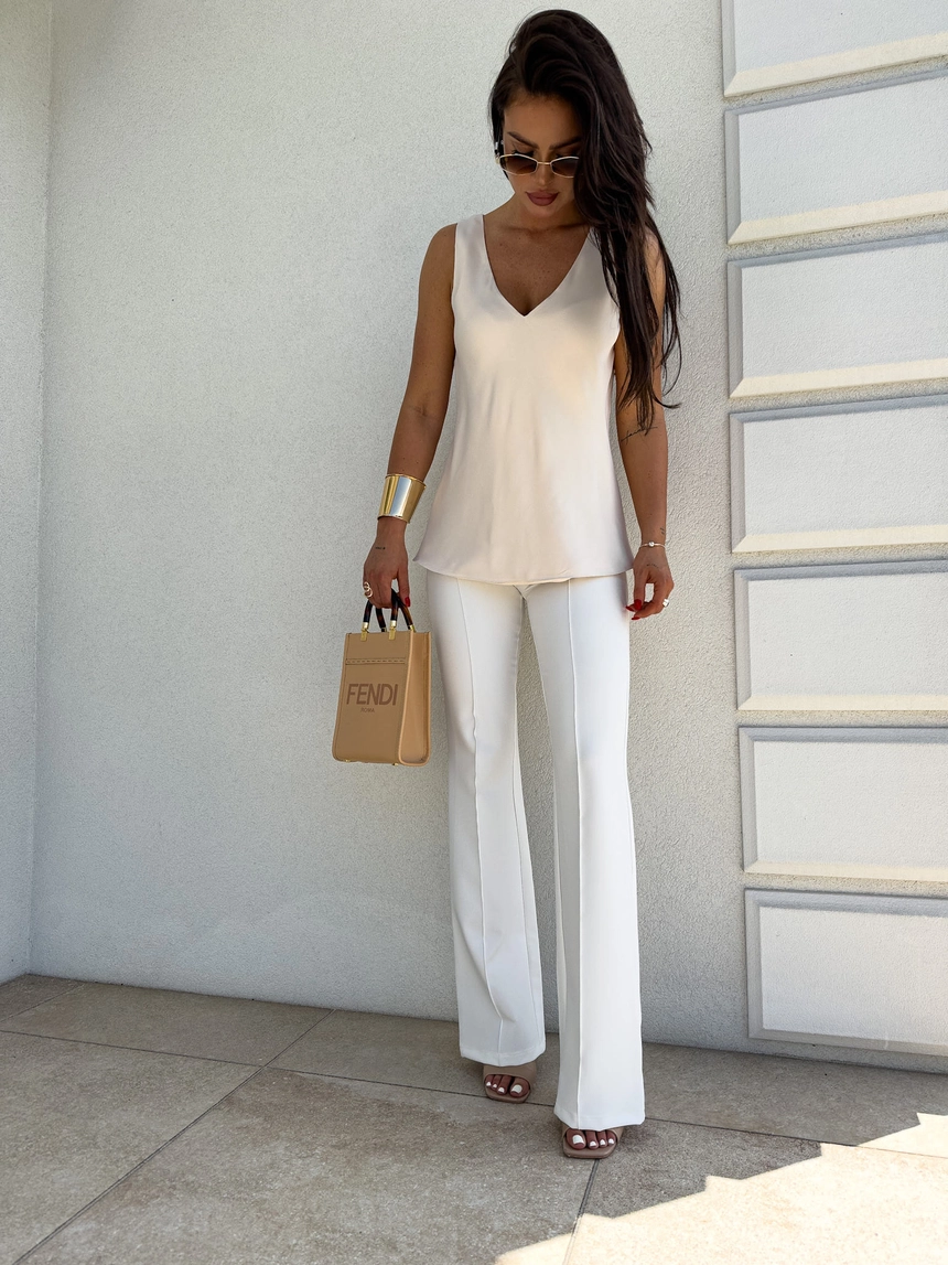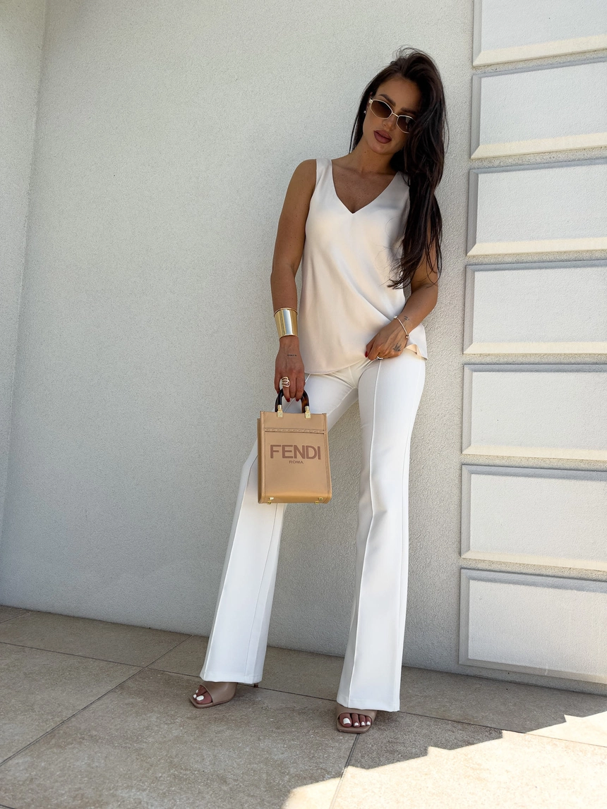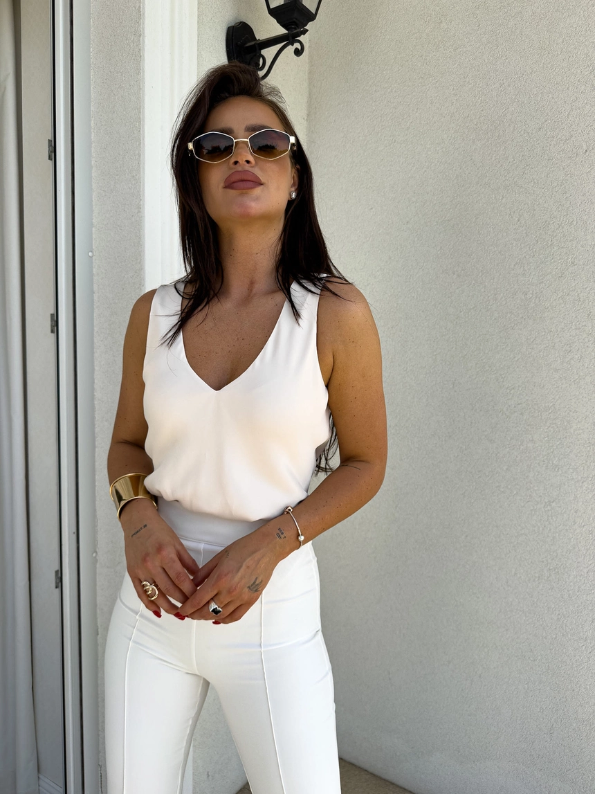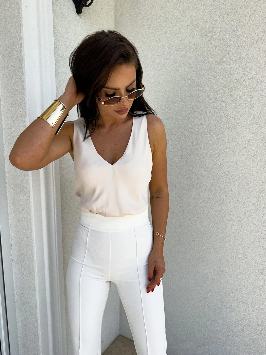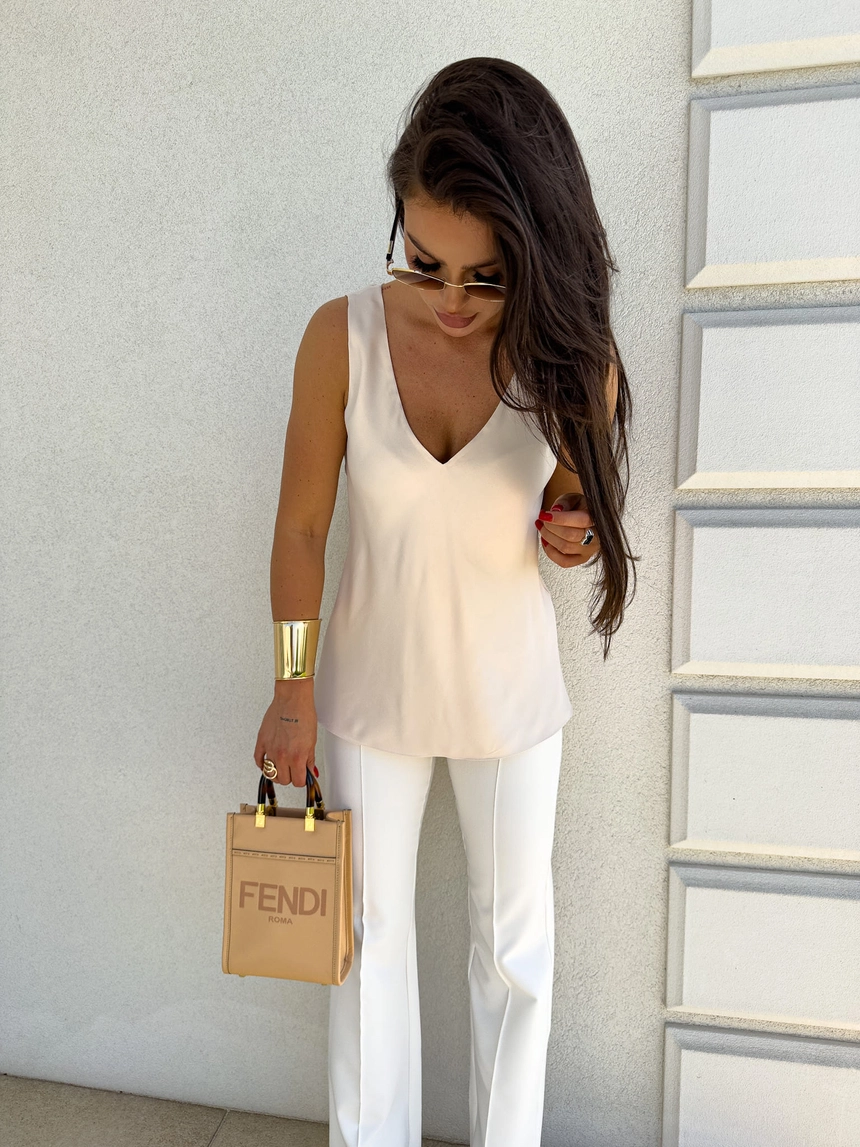 Top z szerszymi ramiączkami, dekolt V. Podwójny przód, dzięki temu nie prześwituje. Krój lekko w literkę "A".