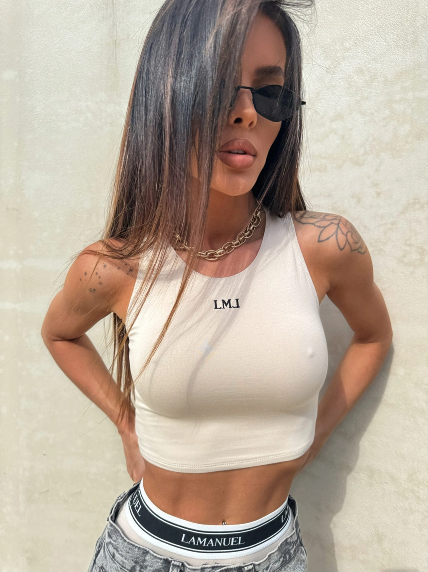 Dwuczęściowy komplet bielizny wykonany z elastycznego, miękkiego materiału, który doskonale dopasowuje się do sylwetki. Top o prostym kroju z zabudowanym dekoltem ozdobiony haftowanym logo. Dół w formie stringów z szeroką, komfortową gumą w pasie z logotypem LAMANUEL. Nowoczesny, minimalistyczny design i wygoda noszenia czynią ten zestaw idealnym zarówno na co dzień, jak i jako stylowy element domowej garderoby. Produkt uciągliwy.Skład: 93% wiskoza 7% elastan