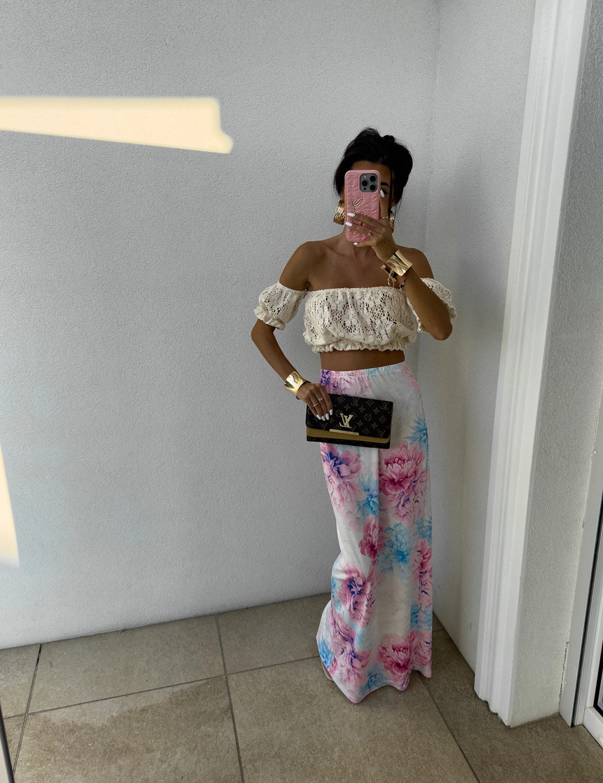 Bluzka Hiszpanka CARLITA kwiatuszki - beżowe