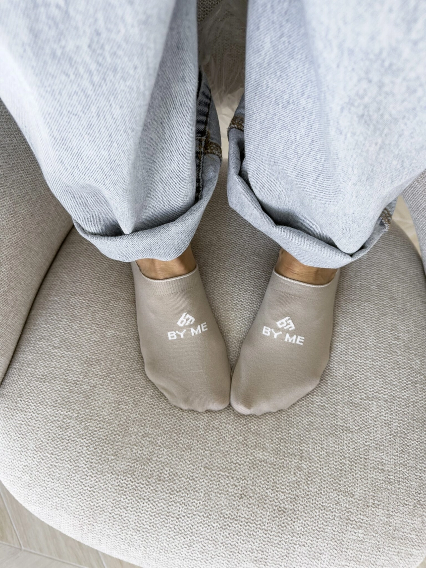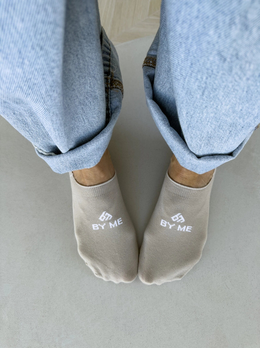 Mikrostopki By Me – beżowe z białym logo DOSTĘPNE OD 30.06.2025r.
