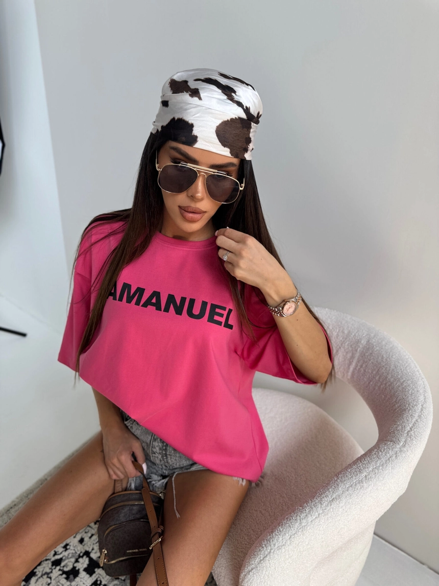 Oversize’owy T-shirt o luźnym kroju wykonany z wysokiej jakości bawełny, zapewniającej wygodę noszenia i swobodę ruchów. Prosty fason z lekko obniżoną linią ramion, który świetnie układa się na sylwetce i pasuje do różnych stylizacji – zarówno sportowych, jak i bardziej casualowych. Na przodzie nadrukowane logo LAMANUEL w kontrastowym wykończeniu, które przyciąga wzrok i nadaje charakteru. T-shirt sprawdzi się zarówno w zestawieniu z dresami, legginsami, jak i z jeansami czy szortami.Skład: 100% bawełna