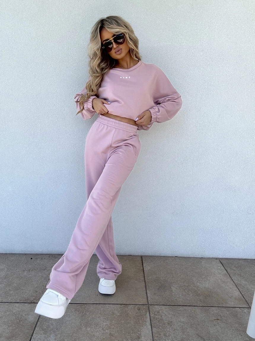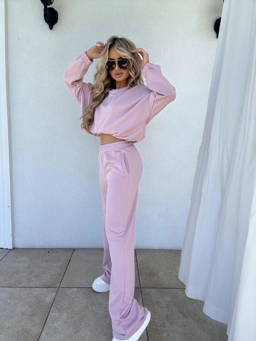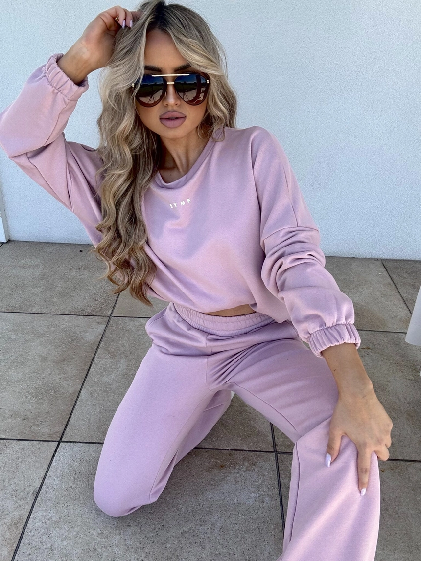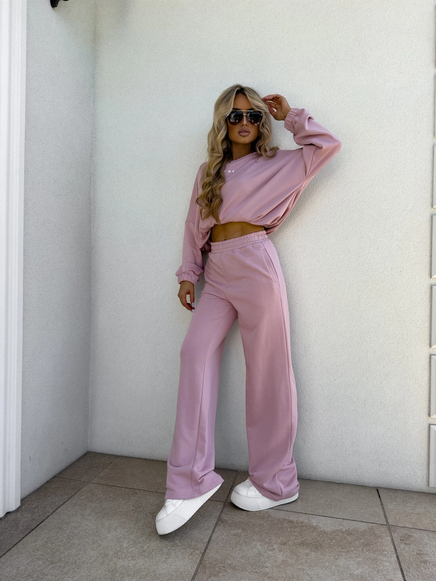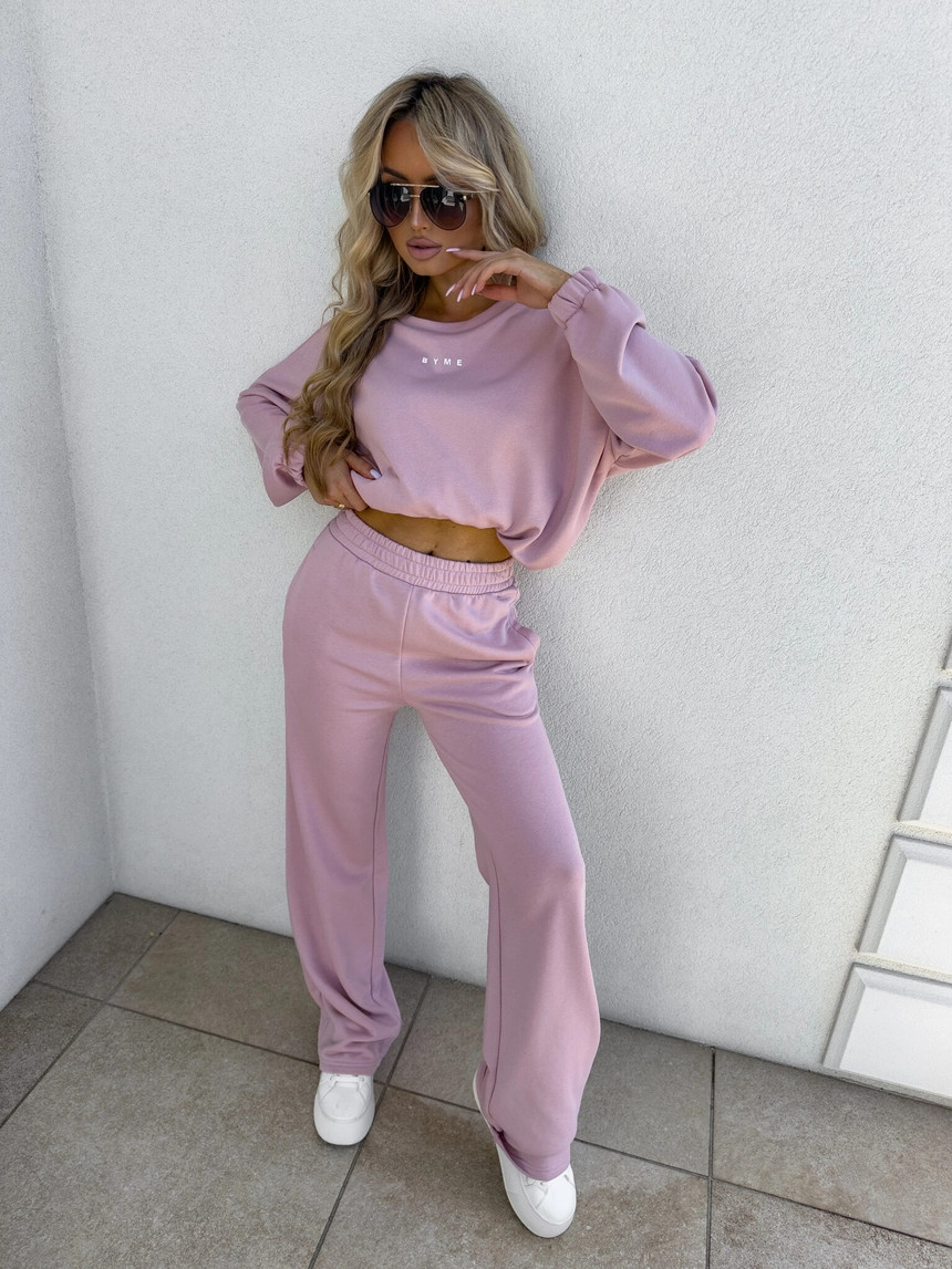 Komplet Sydney składający się z bluzy i spodni. Bluza o prostym, luźnym kroju, z długim rękawem zakończonym gumą. Szerokie spodnie z gumką w pasie
