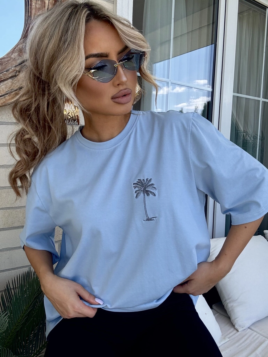 T-shirt PALMS z wysokiej jakości bawełny, posiada dłuższe rękawy. Z przodu koszulki znajduje się subtelny haft przedstawiający palmę, natomiast z tyłu – większy haft z motywem palmy oraz napisem „LA DOLCE VITA”, co w tłumaczeniu z języka włoskiego oznacza „słodkie życie”. To stylowy detal, który przywołuje na myśl letnie dni, relaks i wolność. Idealna propozycja na wakacyjne wypady, spacer po plaży lub po prostu – gdy chcesz poczuć klimat lata niezależnie od pory roku.