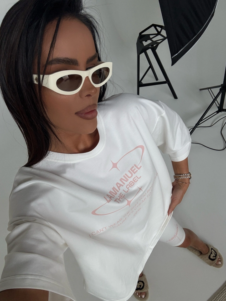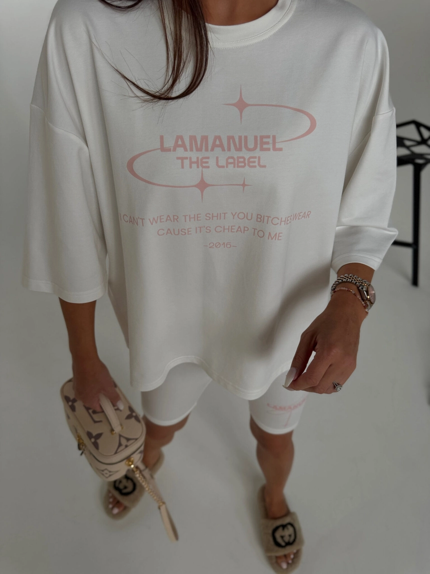 T-shirt o luźnym, oversize’owym kroju wykonany z miękkiej dzianiny bawełnianej. Na froncie znajduje się duży nadruk z nazwą marki oraz hasłem w stylu manifestu, utrzymanym w estetyce futurystycznej. Rękawy sięgające do łokcia i klasyczne wykończenie dekoltu zapewniają komfort noszenia i swobodny charakter. Model idealnie wpisuje się w streetwearowy styl, łącząc wygodę z mocnym przekazem. Połącz go do zestawu z kolarkami BURST w tym samym stylu.Skład: 95% bawełna 5% elastan