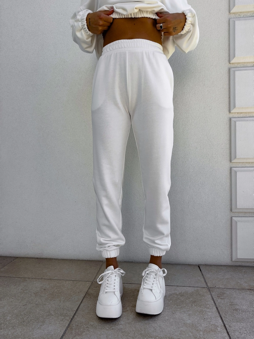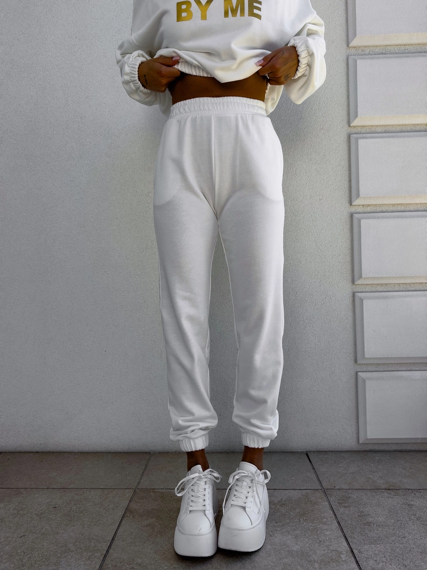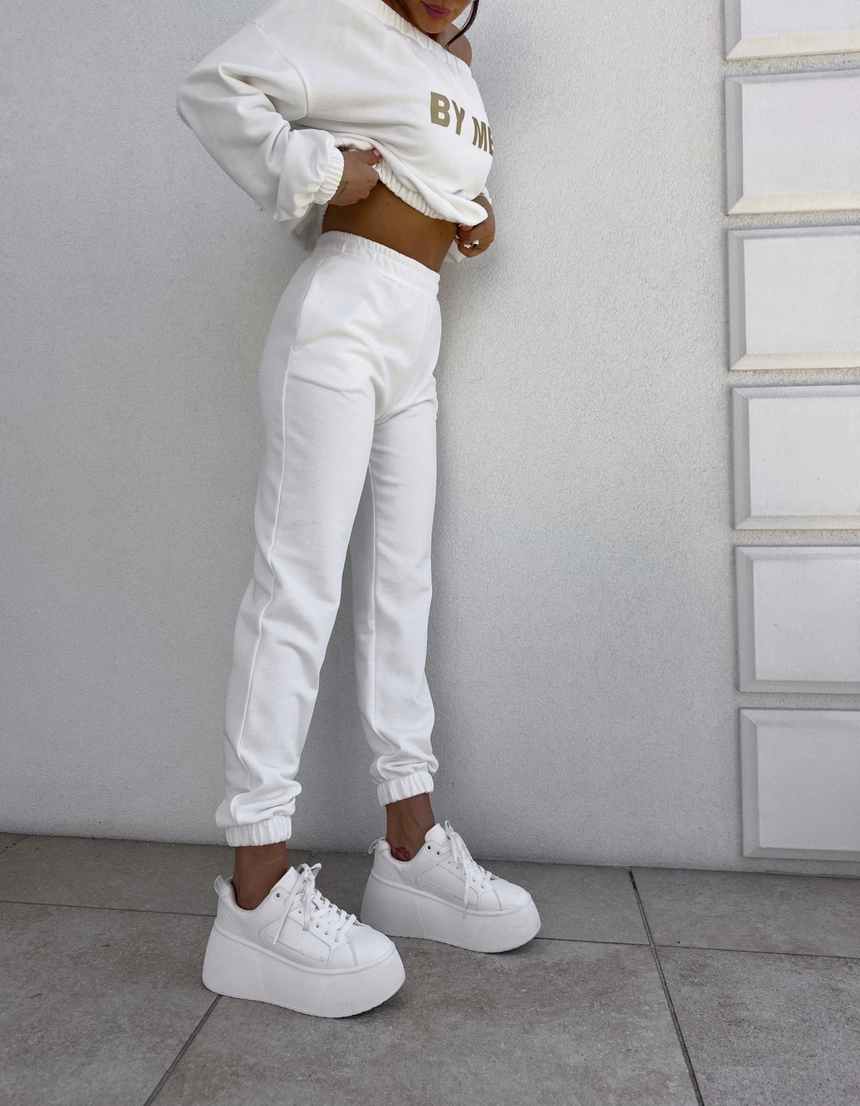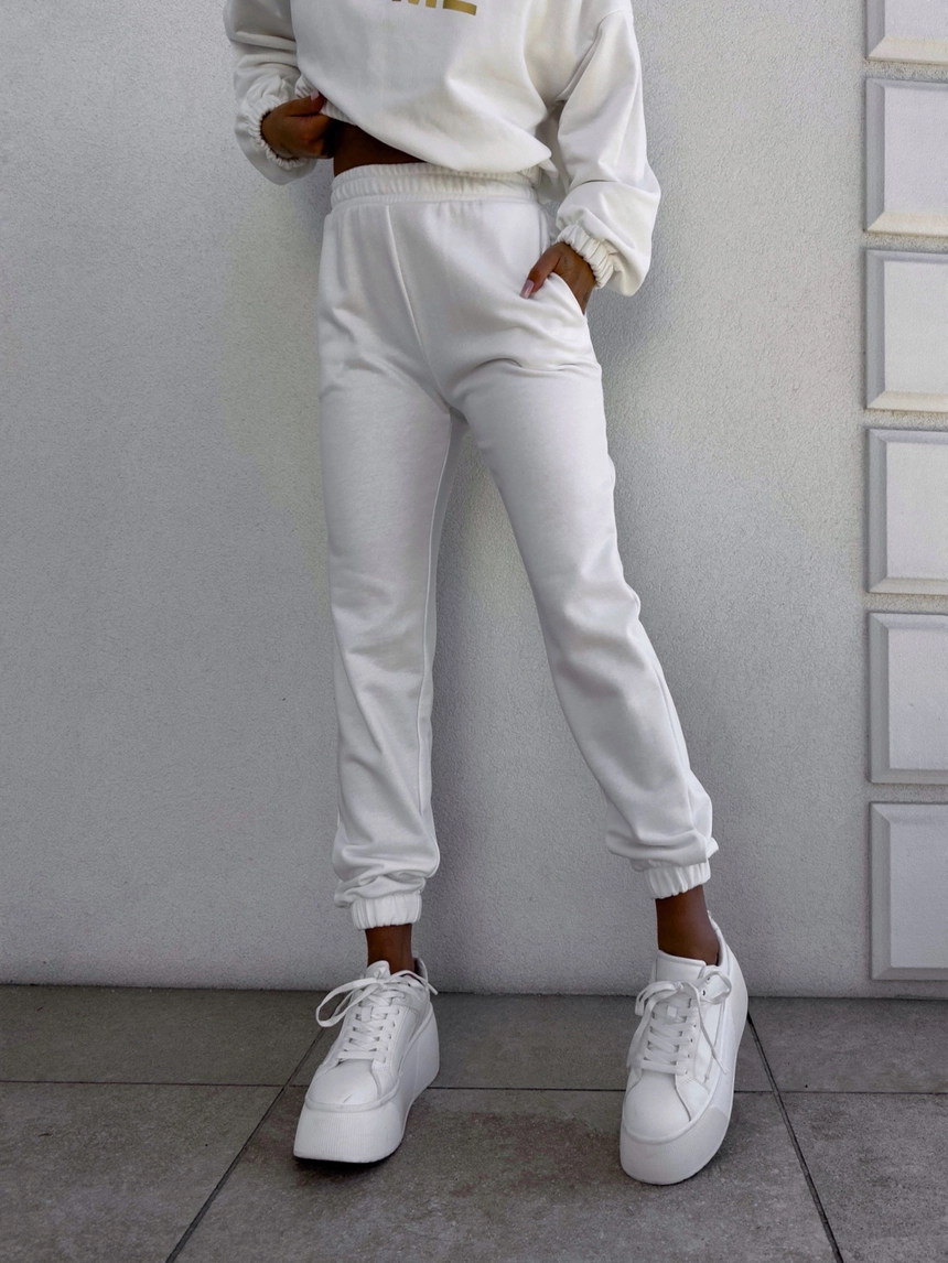 Spodnie dresowe – dopasowane, z elastycznym pasem w talii i ściągaczami na dole nogawek. Ich krój podkreśla sylwetkę, zachowując jednocześnie pełną swobodę ruchów.