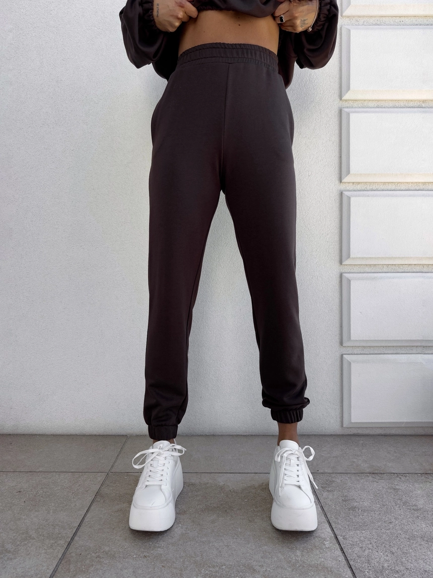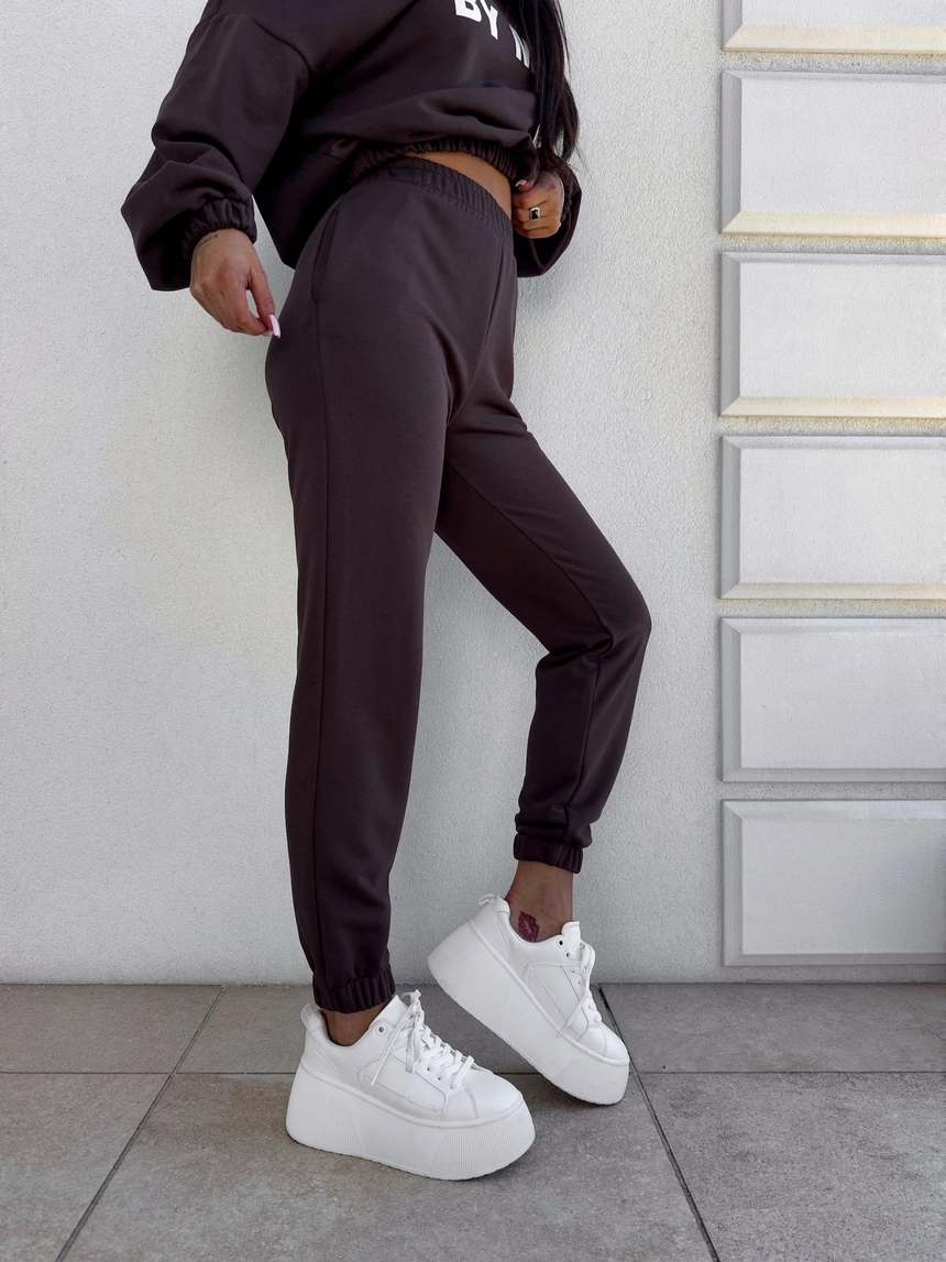 Spodnie dresowe – dopasowane, z elastycznym pasem w talii i ściągaczami na dole nogawek. Ich krój podkreśla sylwetkę, zachowując jednocześnie pełną swobodę ruchów.