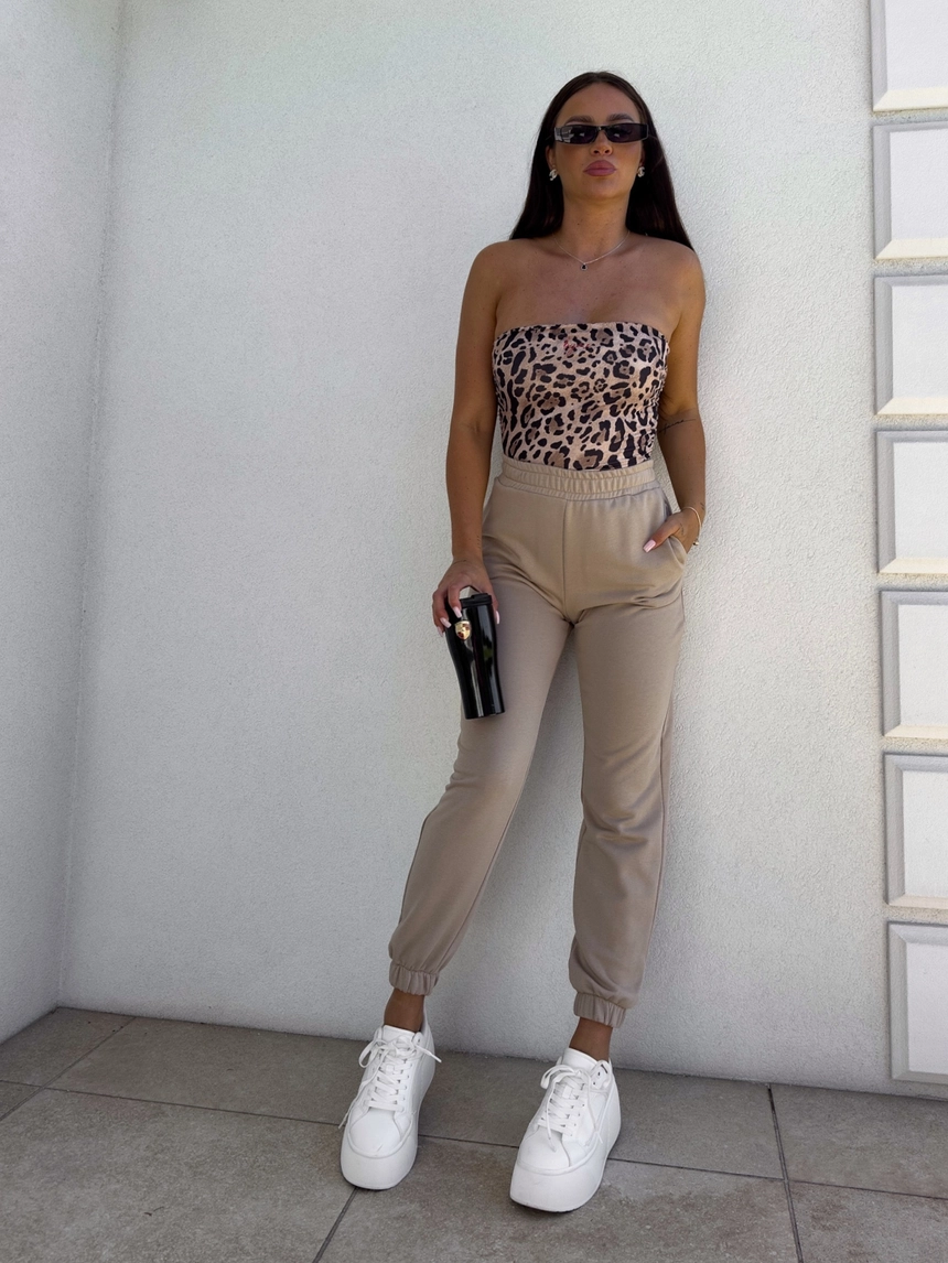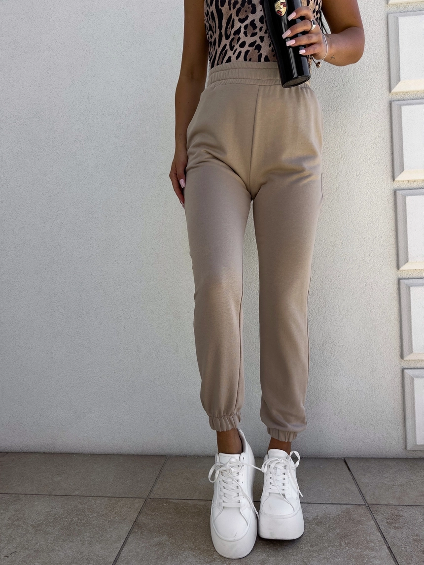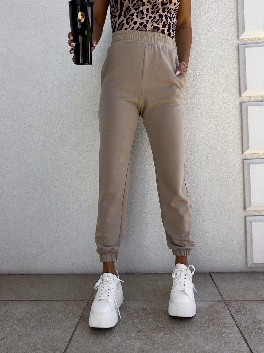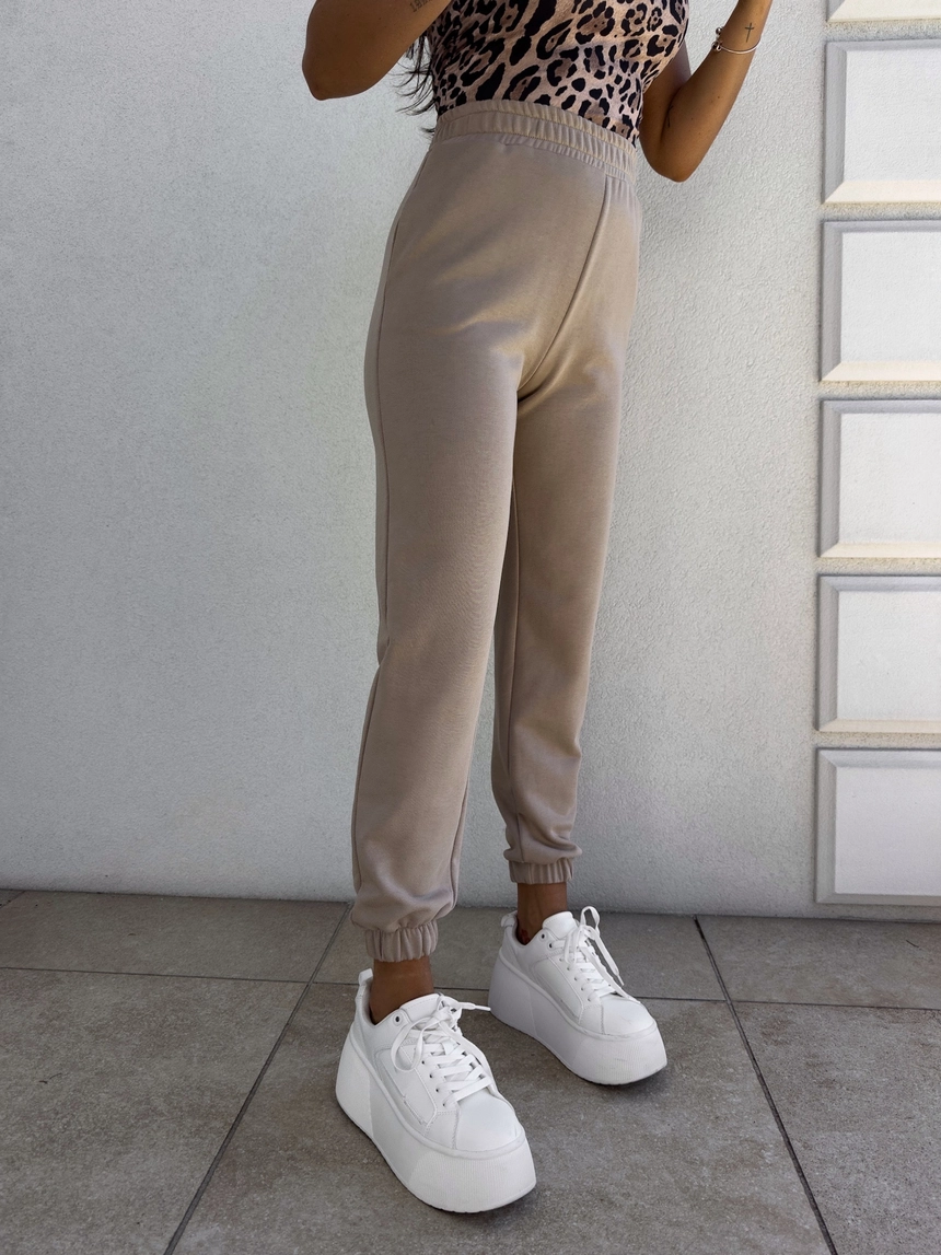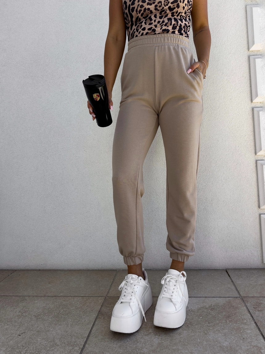 Spodnie dresowe – dopasowane, z elastycznym pasem w talii i ściągaczami na dole nogawek. Ich krój podkreśla sylwetkę, zachowując jednocześnie pełną swobodę ruchów.