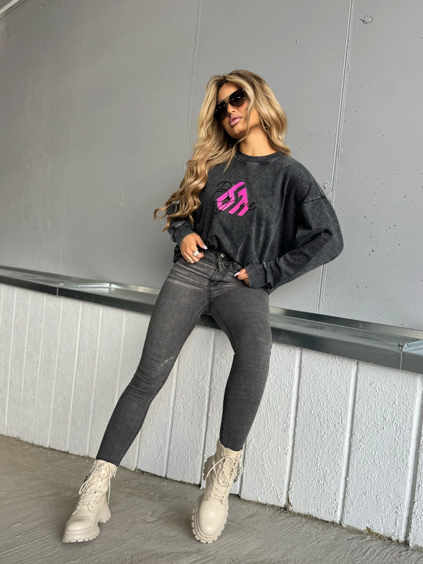 Stylowa bluza o swobodnym kroju, wykonana z miękkiej, dekatyzowanej bawełny, która nadaje jej unikalny, lekko sprany wygląd. Zakładana przez głowę, długie rękawy zapewniają komfort noszenia, a logowanie z przodu dodaje charakterystycznego akcentu. Idealna na co dzień – do jeansów, dresów czy szortów.