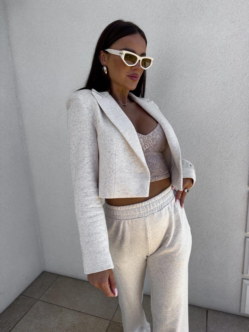 Marynarka o krótkim kroju, gładkie wykończenie. Marynarka posiada podszewkę, zapięcie regulowane przy pomocy guzika.