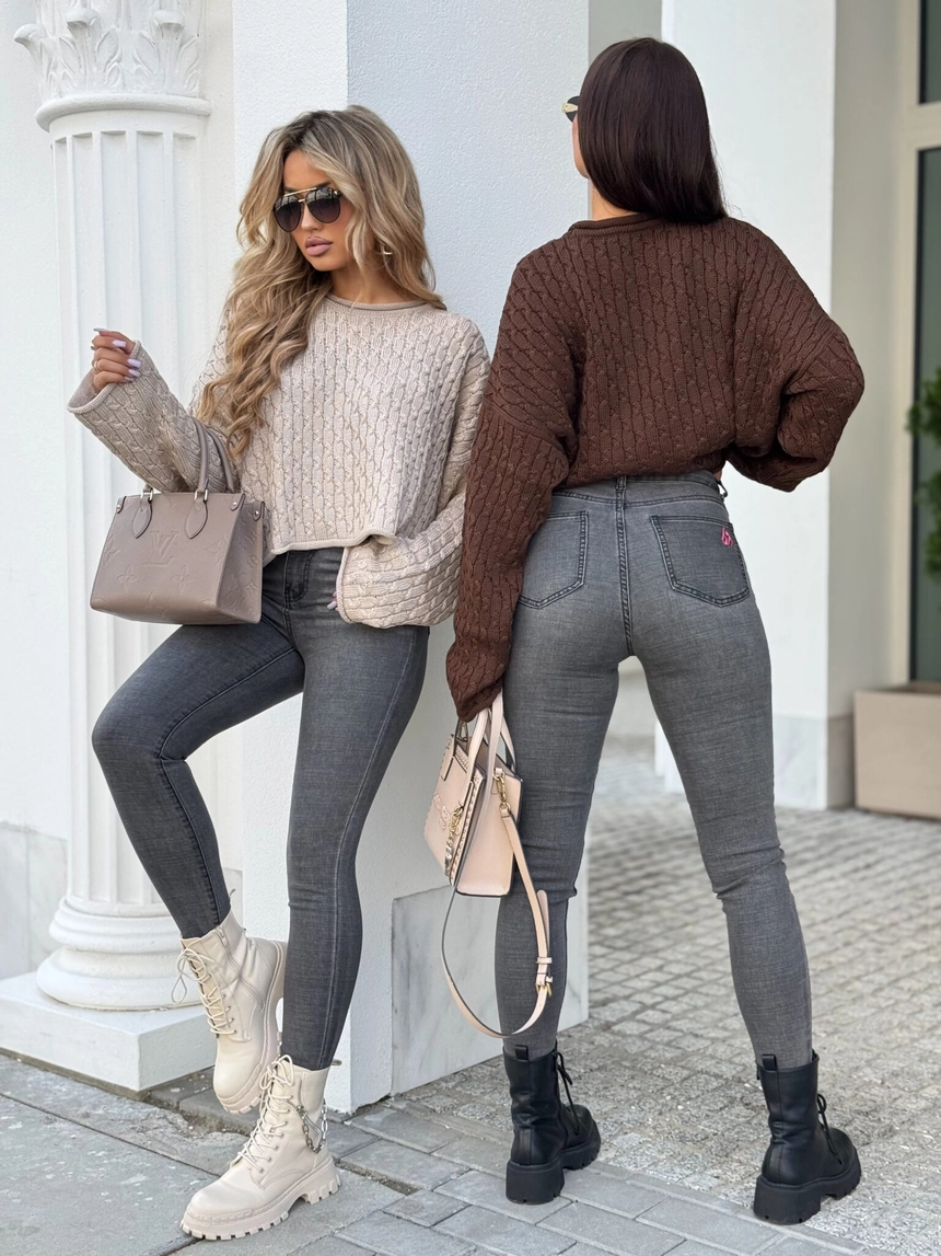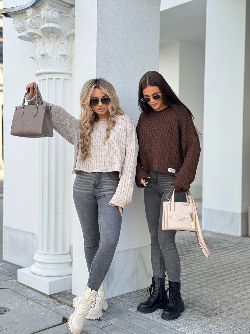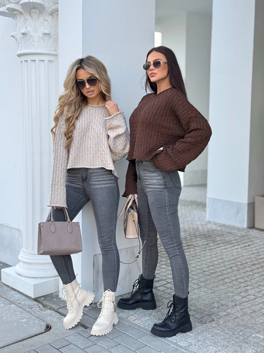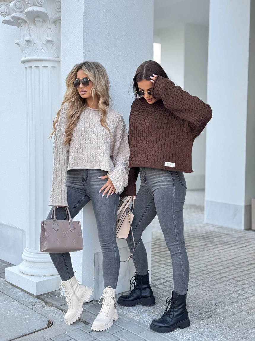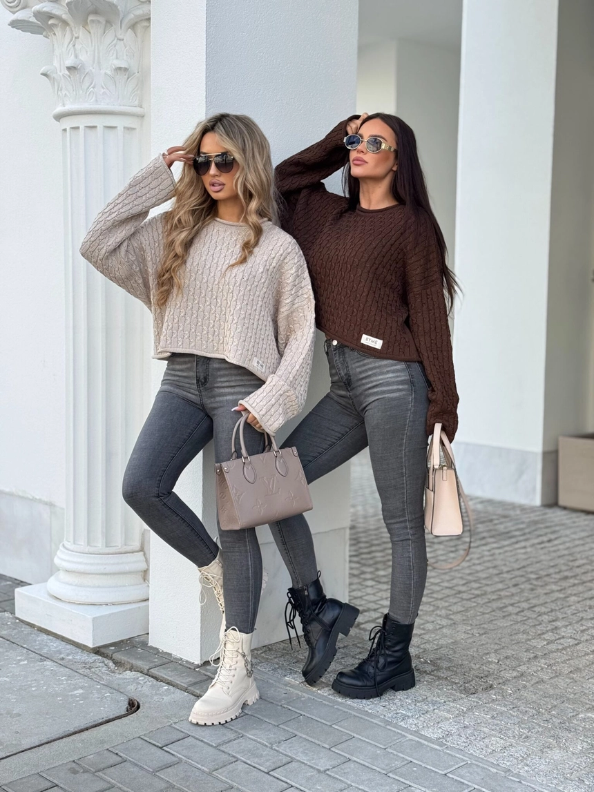 Model wykonany z miękkiej, przyjemnej w dotyku dzianiny o pięknym klasycznym splocie w warkocze. Sweter ma luźny, oversize'owy fason, który zapewnia komfort noszenia i modny look.