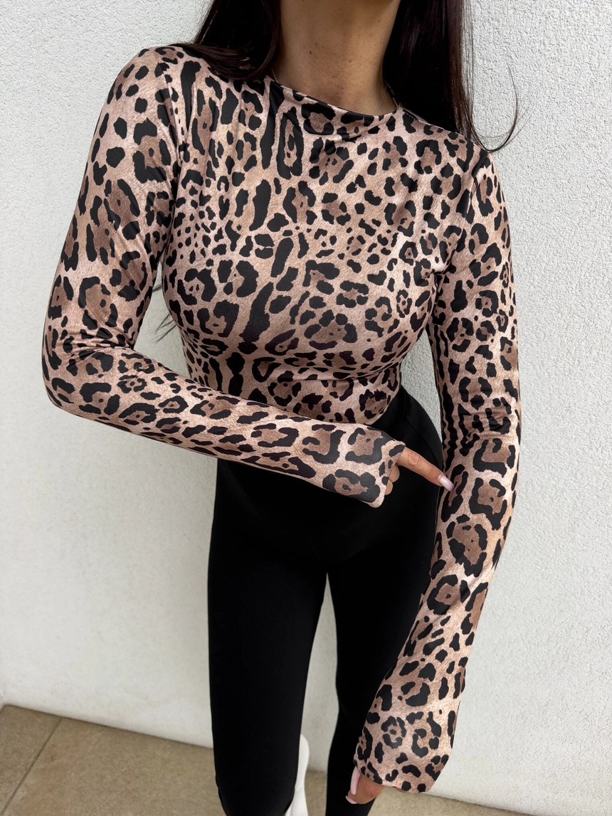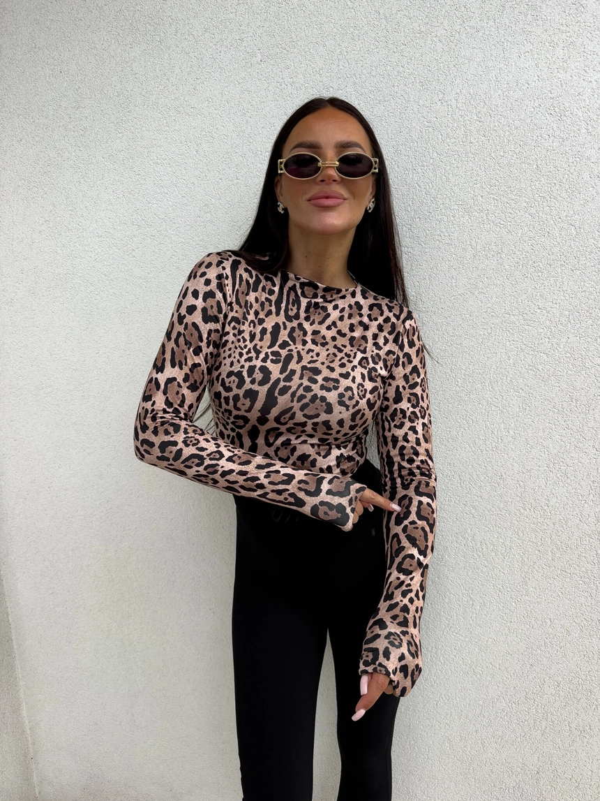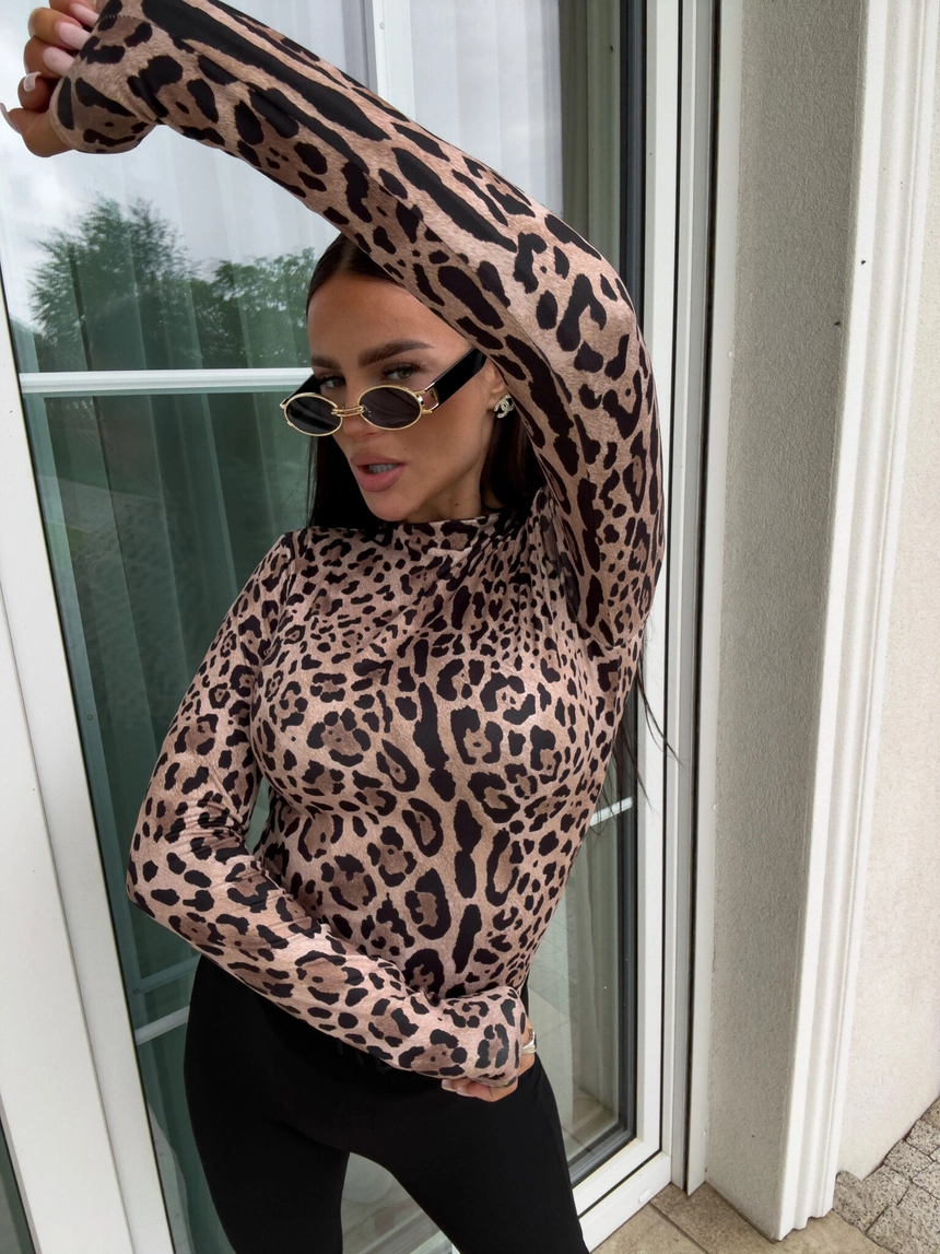 Bluzka SKIN print pantera – czekoladowo-czarna