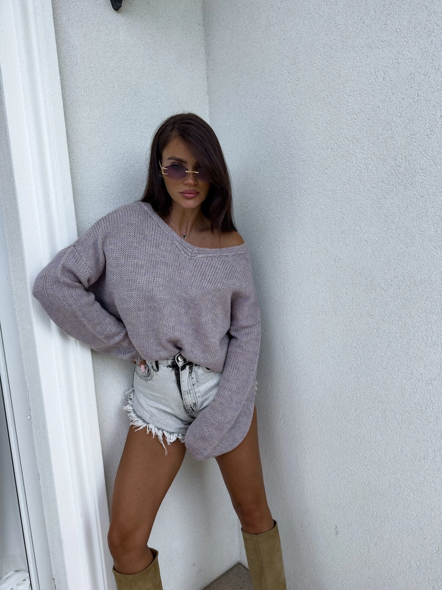 Stylowy i uniwersalny sweter zakładany przez głowę, wykonany z miękkiej, przyjemnej w dotyku dzianiny. Model z długimi rękawami zakończonymi delikatnie zwężanymi mankietami. Prosty fason pozwala nosić sweter zarówno przodem, jak i tyłem – w zależności od stylizacji i nastroju.