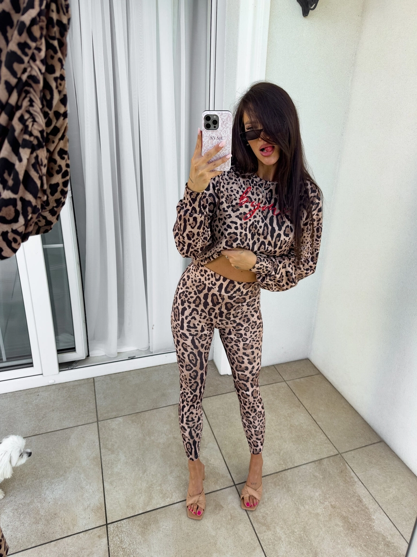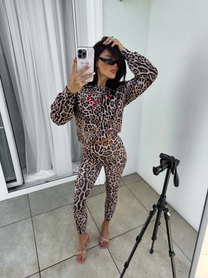 Bluza dresowa LOGO print pantera – beżowo-czarna