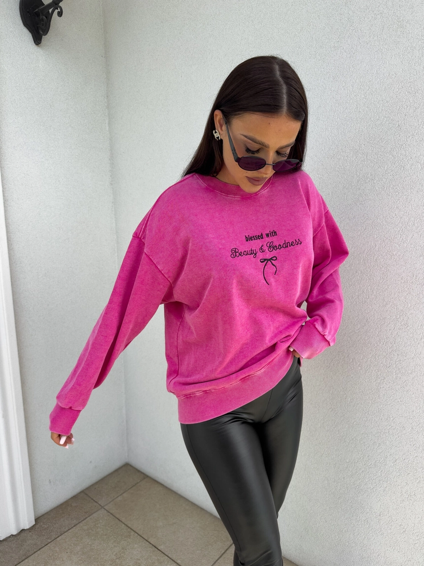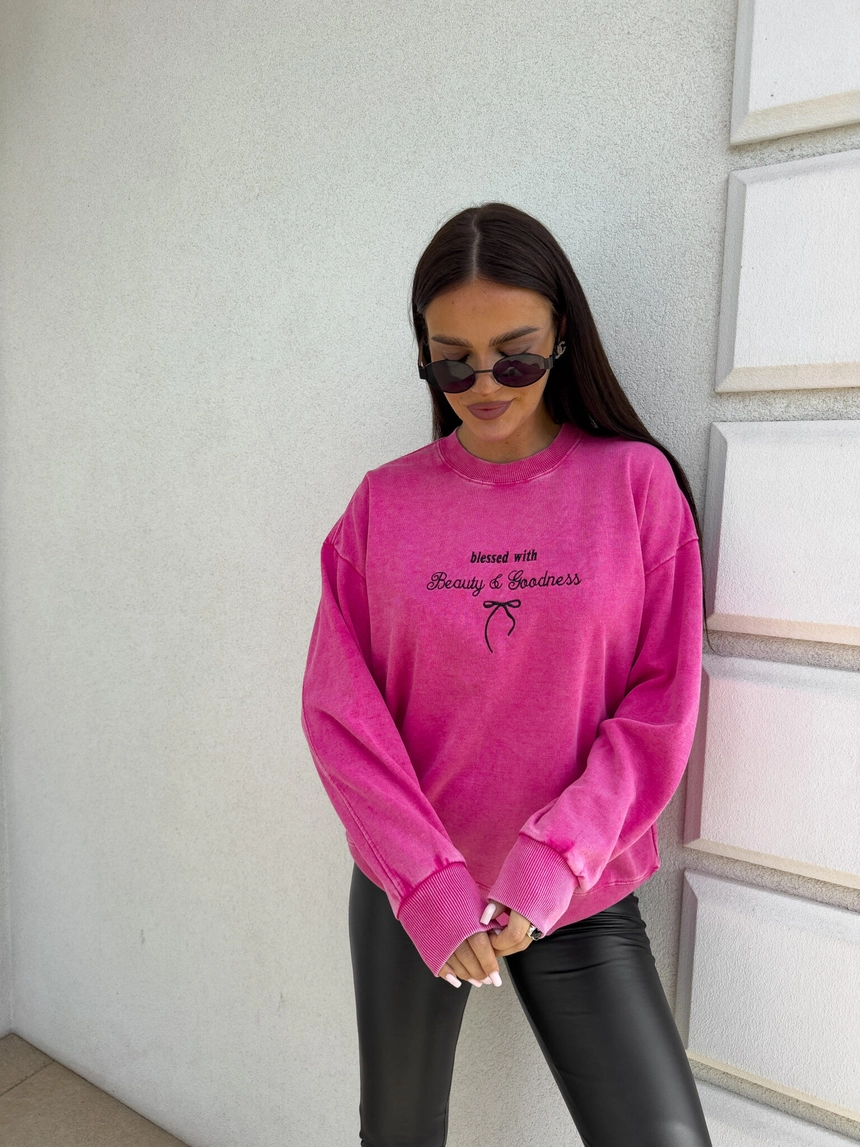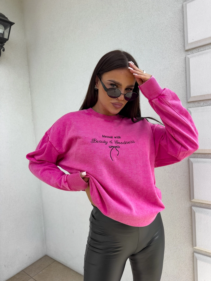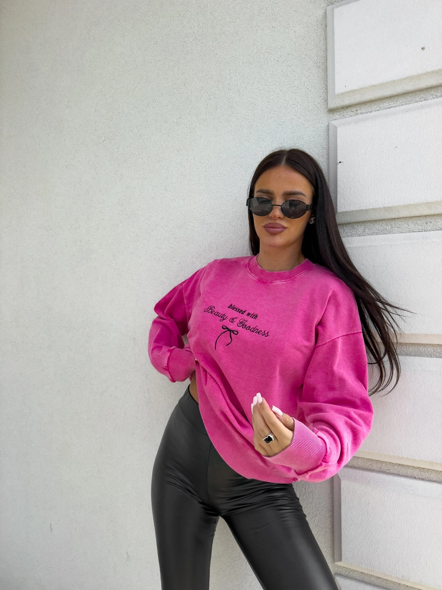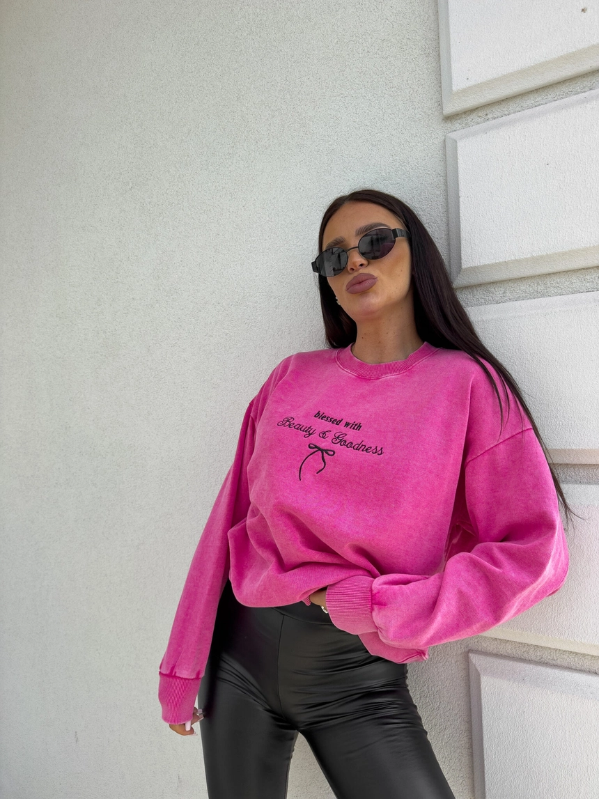 Stylowa bluza o swobodnym kroju, wykonana z miękkiej, dekatyzowanej bawełny, która nadaje jej unikalny, lekko sprany wygląd. Zakładana przez głowę, długie rękawy zapewniają komfort noszenia, a logowanie z przodu dodaje charakterystycznego akcentu. Idealna na co dzień – do jeansów, dresów czy szortów.