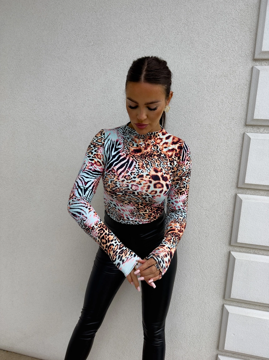 Bluzka SKIN print animal – miętowo-pomarańczowy