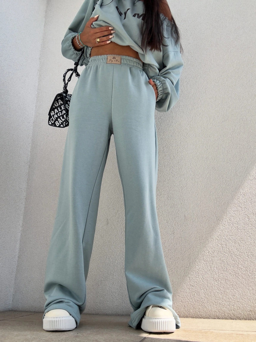 Luźne spodnie dresowe z szerokimi nogawkami to idealne połączenie komfortu i swobodnego stylu. Wykonane z miękkiego materiału, mają prosty krój i szerokie nogawki, które zapewniają maksymalną wygodę i pełną swobodę ruchów. W pasie znajduje się elastyczna gumka, dzięki której spodnie dopasowują się do sylwetki, nie uciskając. Dodatkowym detalem jest subtelna metka z napisem „By Me” przyszyta centralnie na gumce, podkreślająca unikatowy charakter produktu.