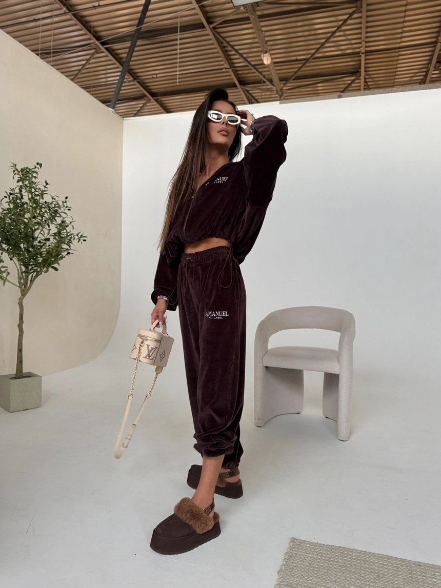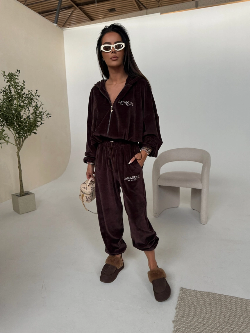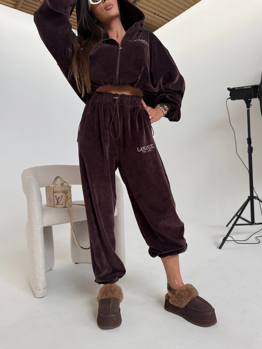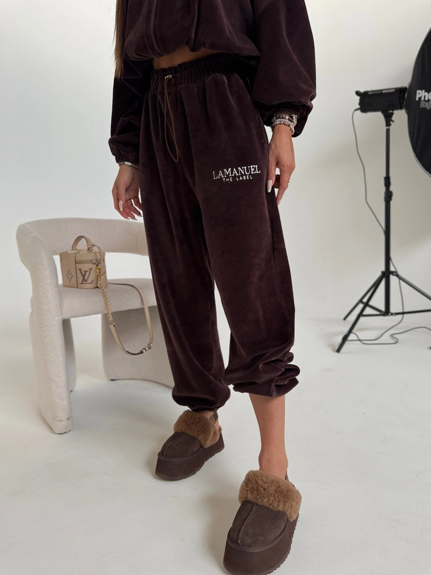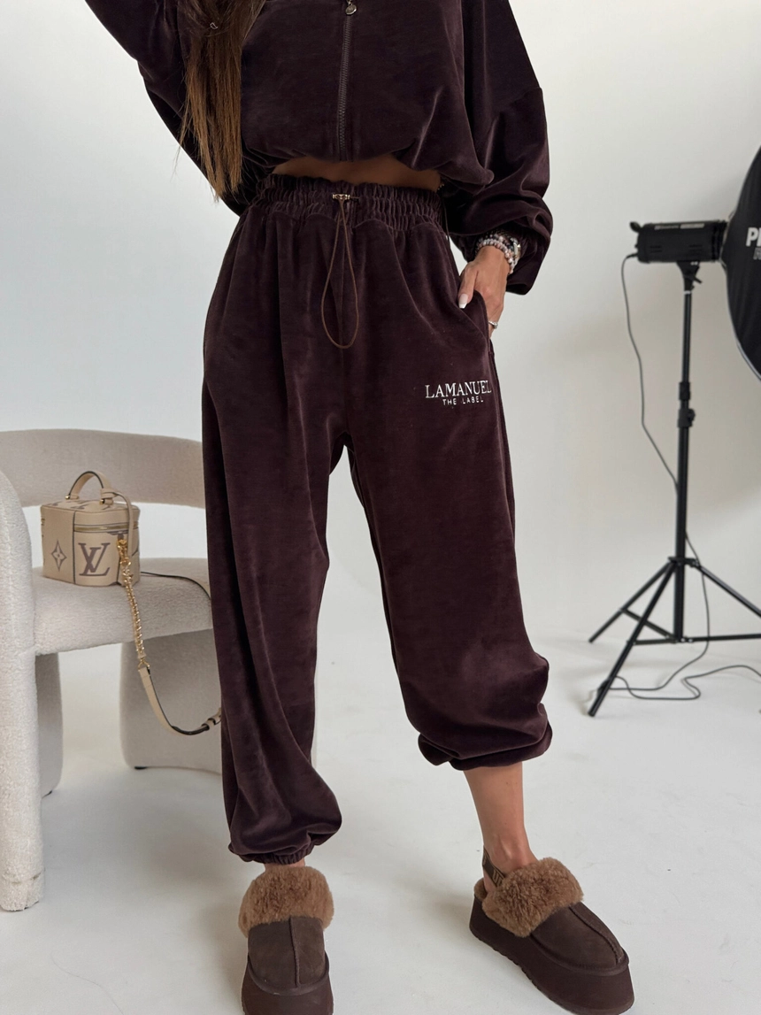 Luźne spodnie dresowe o zwężanym kroju i elastycznym wykończeniu w pasie oraz przy kostkach. Po lewej stronie wyhaftowane logo lamanuel w kontrastowym kolorze. Ściągacz w pasie z troczkami pozwala idealnie dopasować je do sylwetki. Casual, który wcale nie wygląda zwyczajnie. Spodnie mimo, że są szerokie pasują idealnie od rozmiaru XS-L.Skład: 90% bawełna 10% poliester