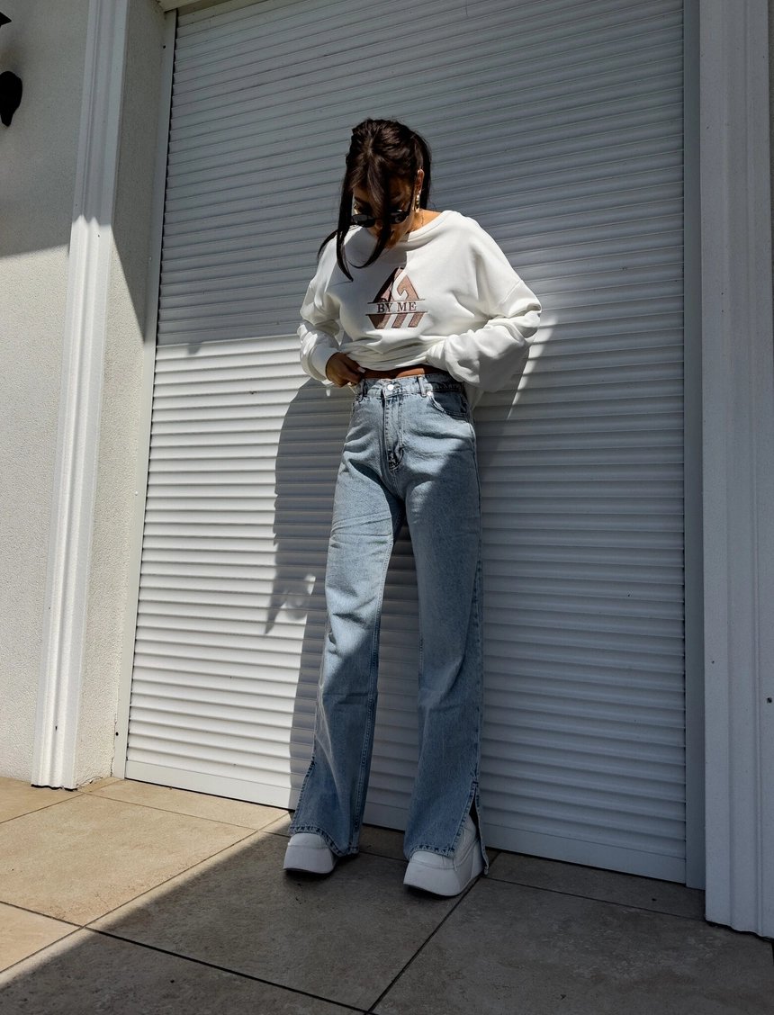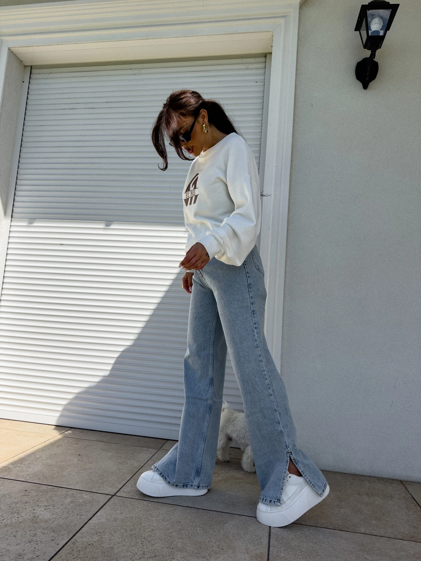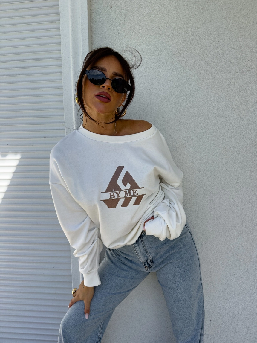 Bluza o prostym, luźnym kroju, z długim rękawem z logowaniem na środku. Wkładana przez głowę.