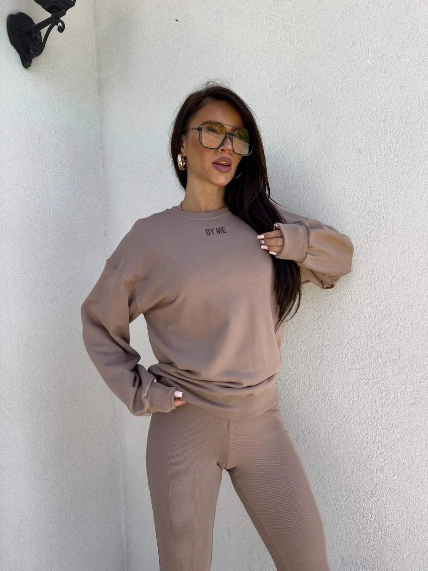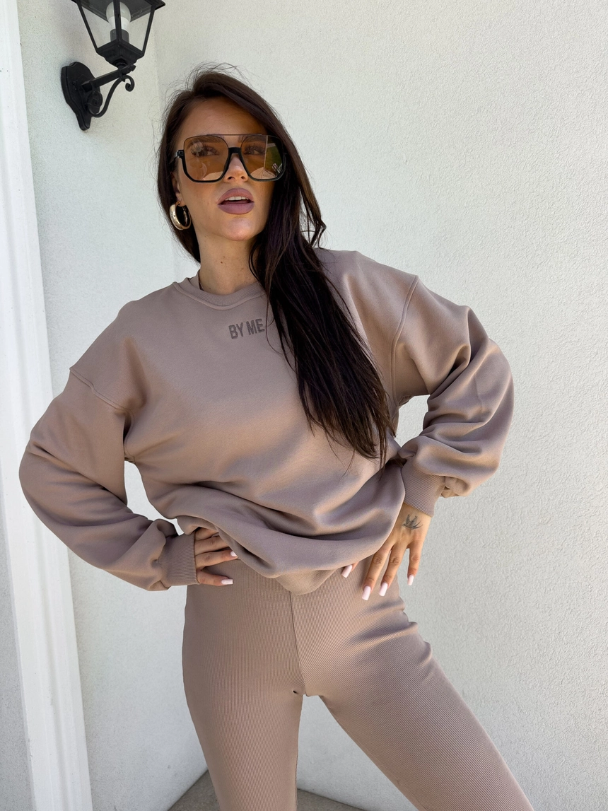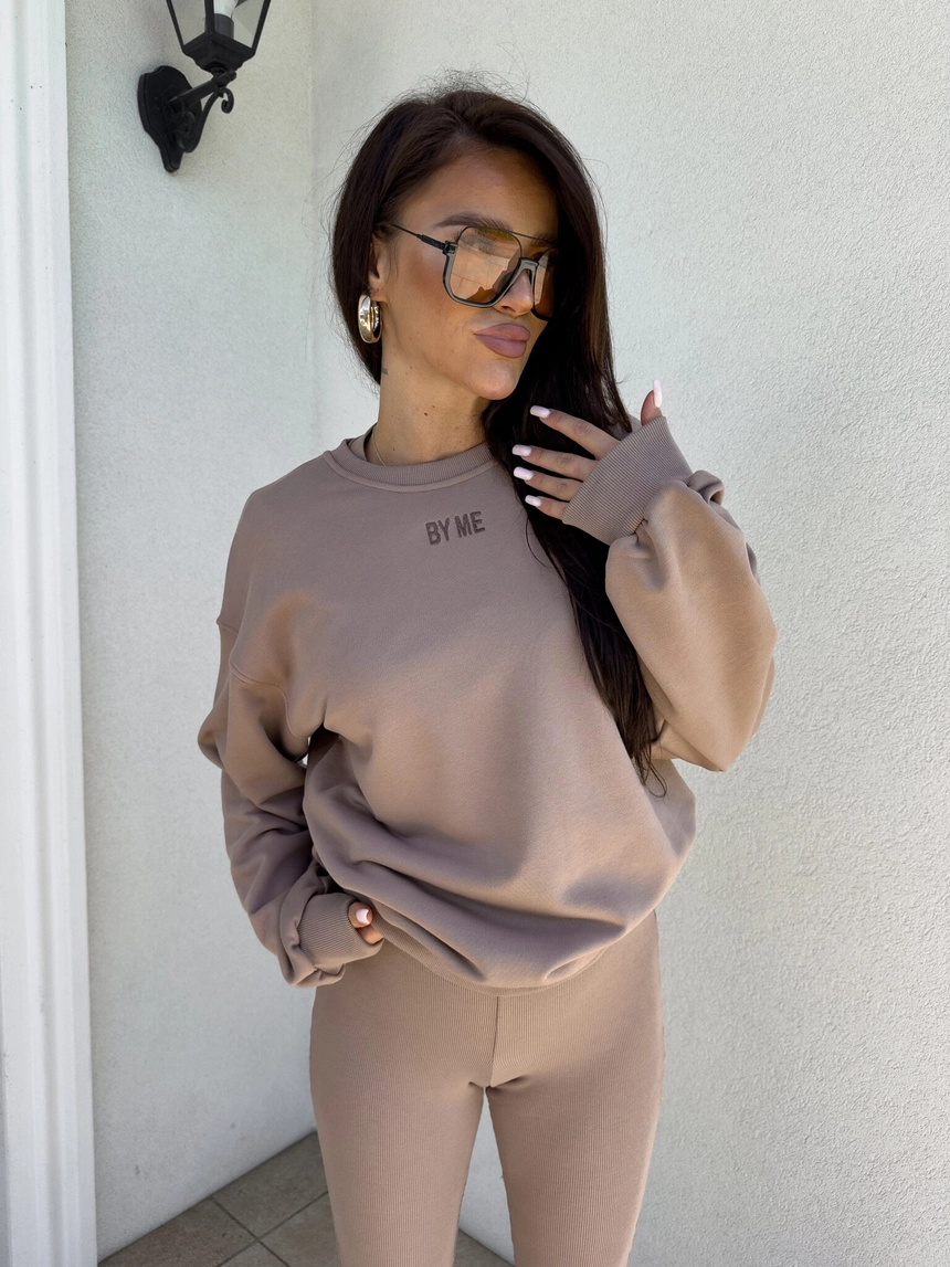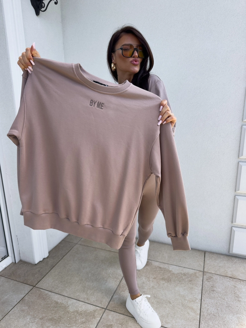 Bluza o swobodnym kroju, wykonana z miękkiej bawełny. Zakładana przez głowę, długie rękawy zapewniają komfort noszenia. Idealna na co dzień – do jeansów, dresów czy szortów. Minimalistyczny napis "BY ME" umieszczony na środku przy dekolcie.