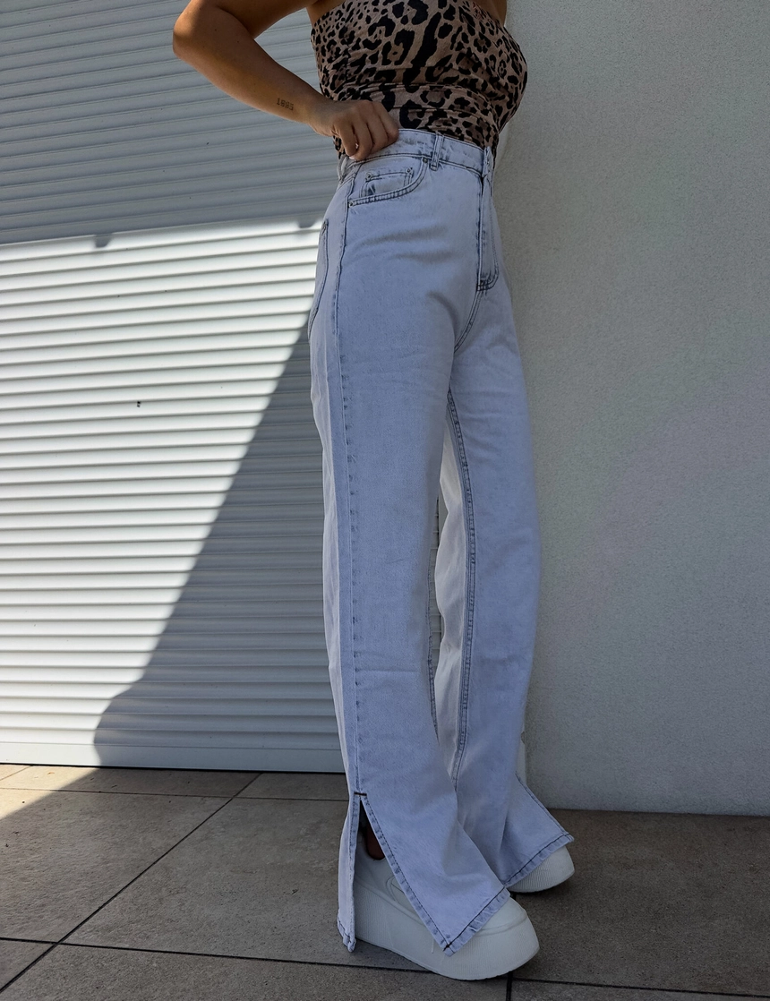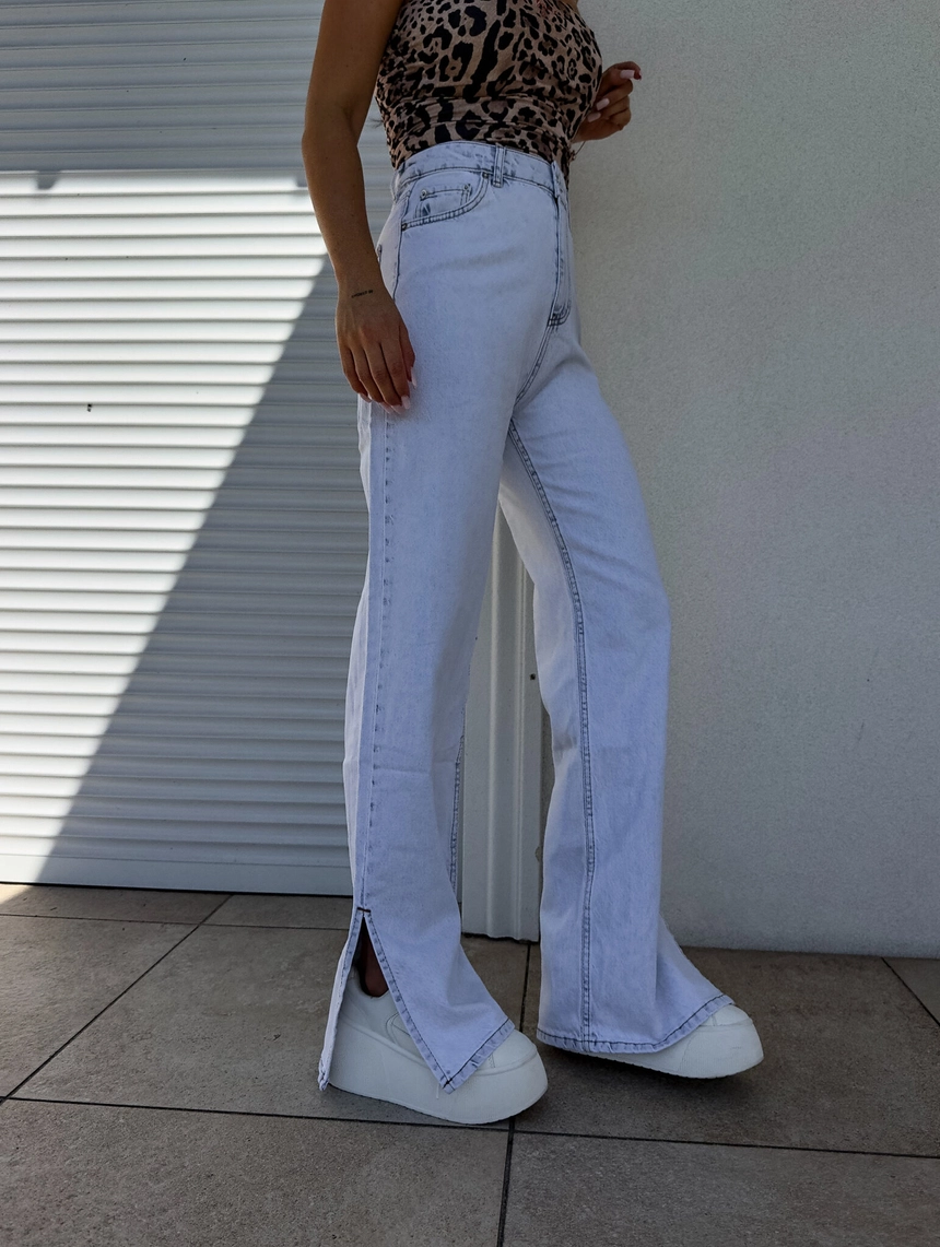 Jeansy Mom Fit sprawdzą się do wielu stylizacji. Zapinane na guzik, posiadają szlufki oraz kieszenie z przodu i z tyłu. Nogawki zakończone stylowym rozcięciem nadają im nowoczesnego charakteru i świetnie prezentują się zarówno z trampkami, jak i botkami.