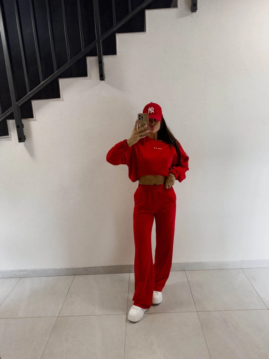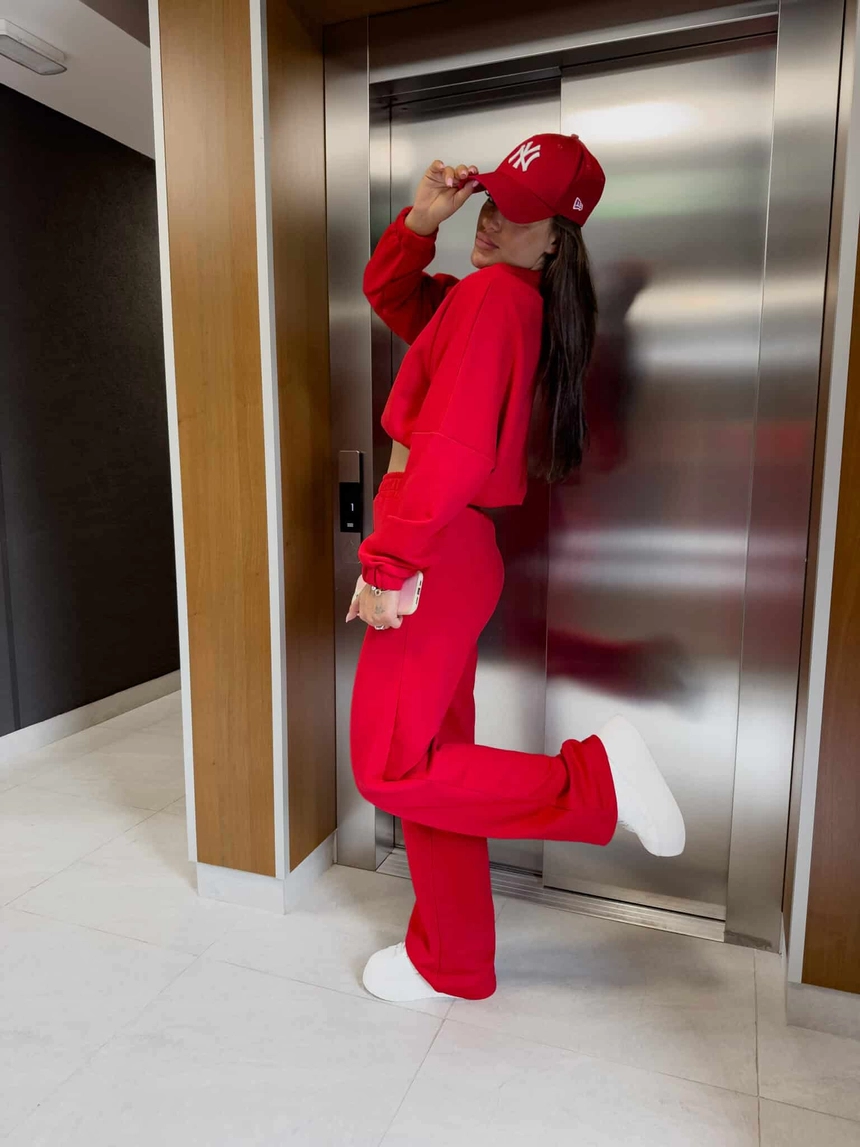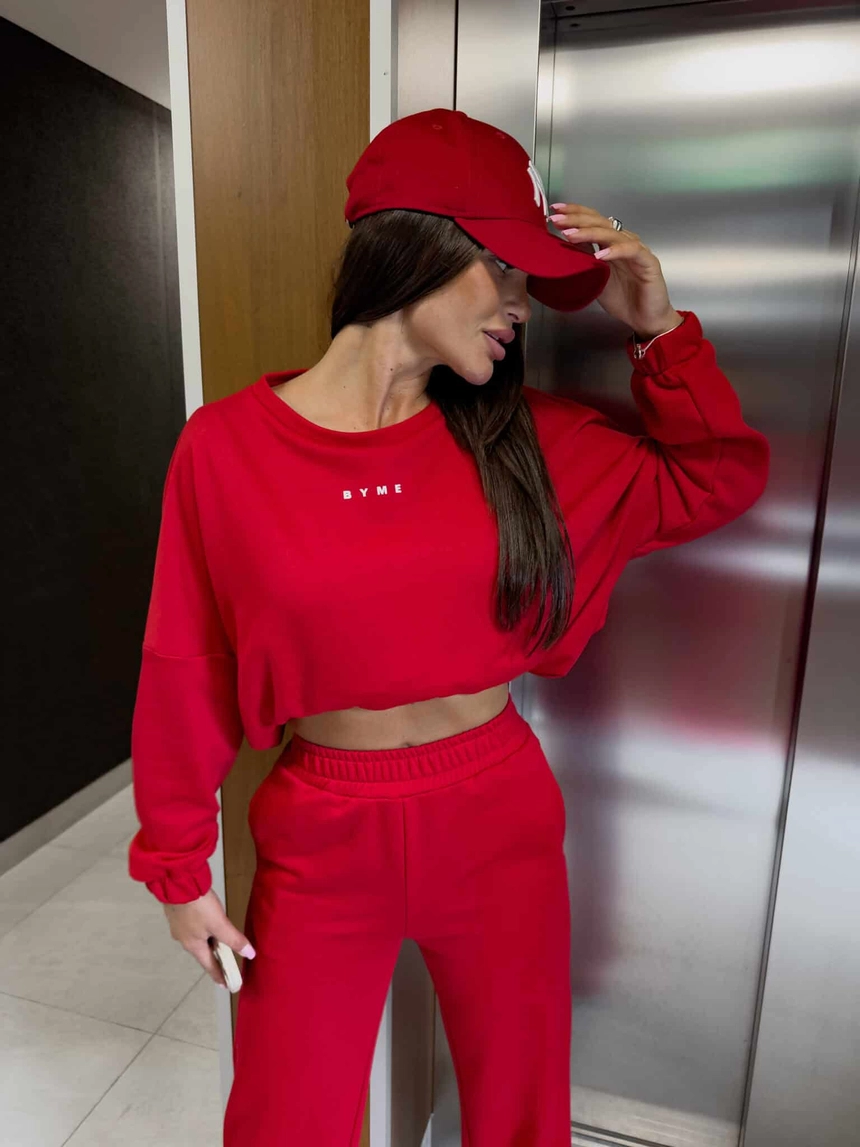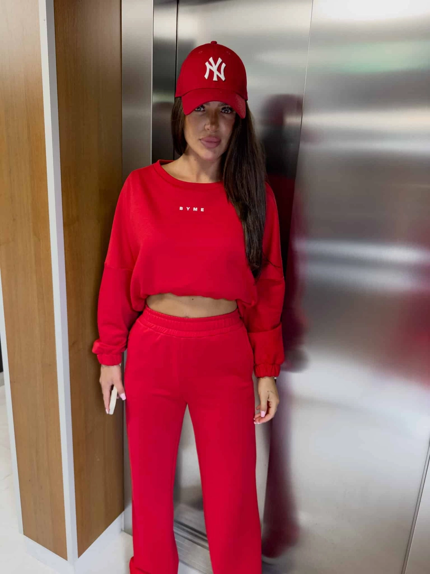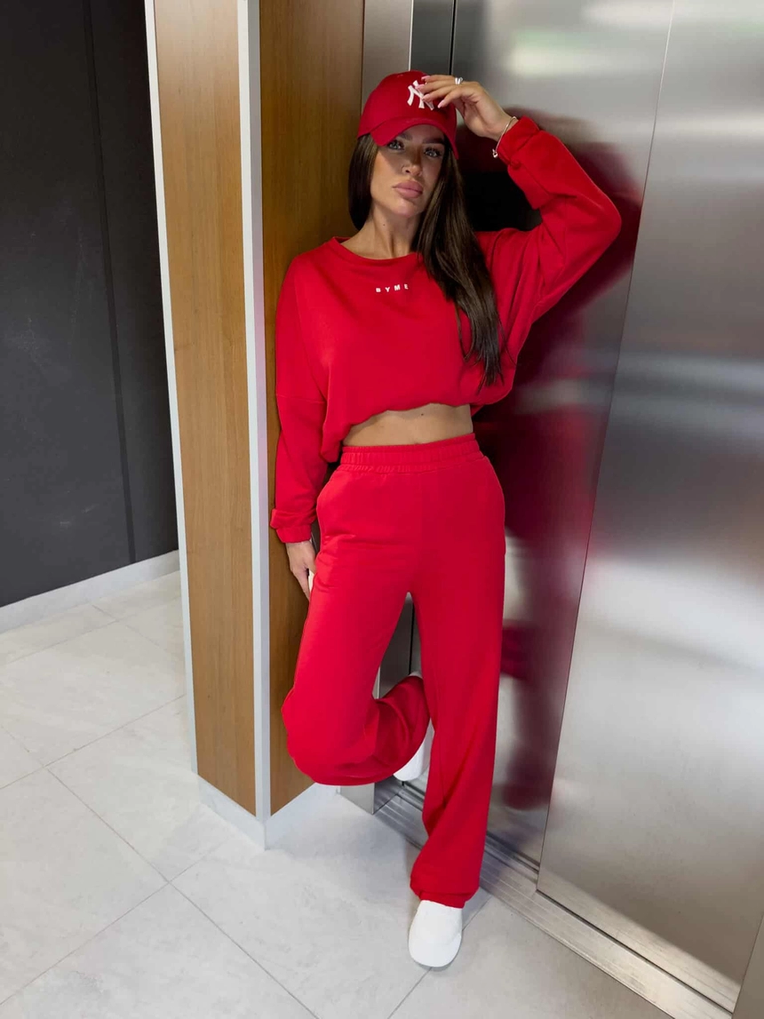 Komplet Sydney składający się z bluzy i spodni. Bluza o prostym, luźnym kroju, z długim rękawem zakończonym gumą. Szerokie spodnie z gumką w pasie