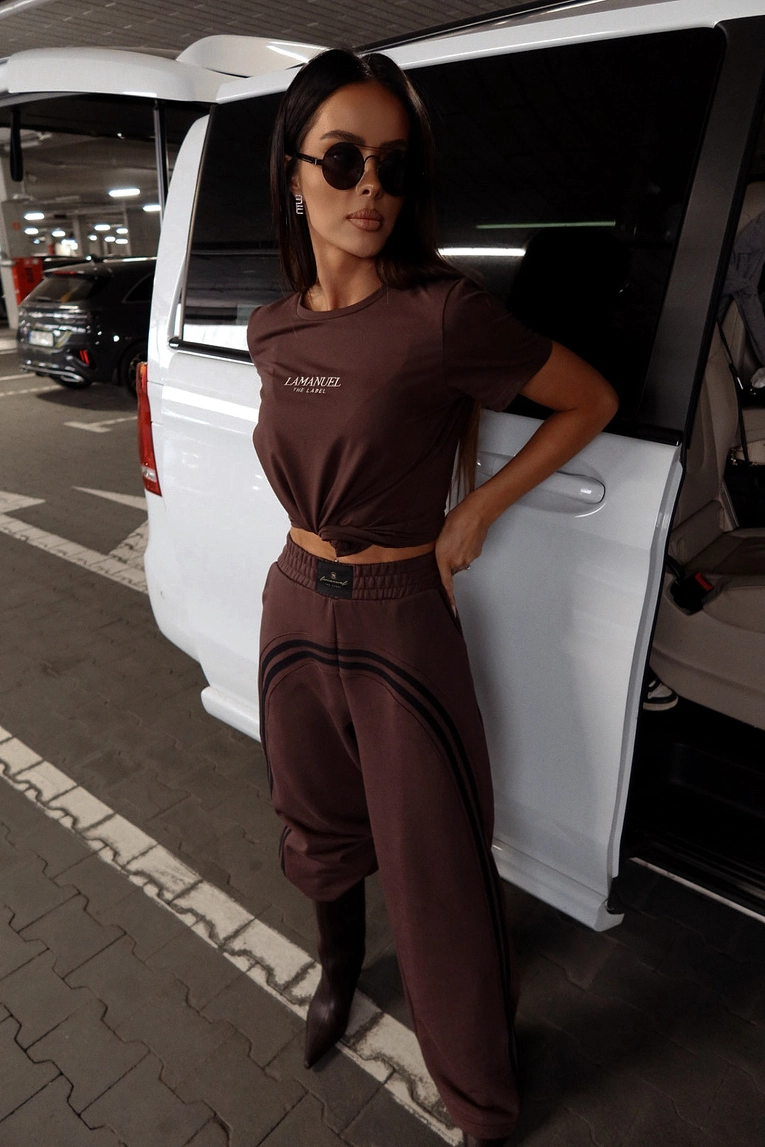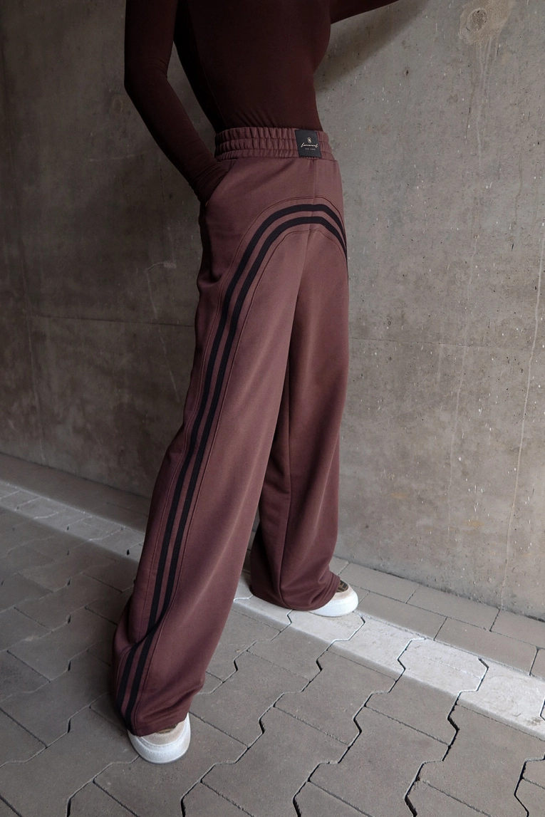 Dresowe spodnie o luźnym, prostym kroju wykonane z grubszej, mięsistej bawełny drapanej od wewnątrz. Charakterystyczne, profilowane przeszycia z przodu i z tyłu nadają formę oraz wyróżniają model na tle klasycznych fasonów. Szerokie lampasy z kontrastowymi pasami optycznie wydłużają sylwetkę. Elastyczna guma w pasie zapewnia wygodne dopasowanie, a naszywka z logo z przodu podkreśla streetwearowy charakter spodni. Model łączy wygodę z mocnym wizualnym akcentem — idealny do stylizacji casualowych i sportowych.Skład: 90% bawełna 10% poliester
