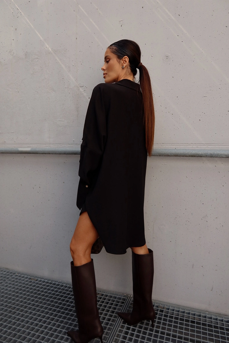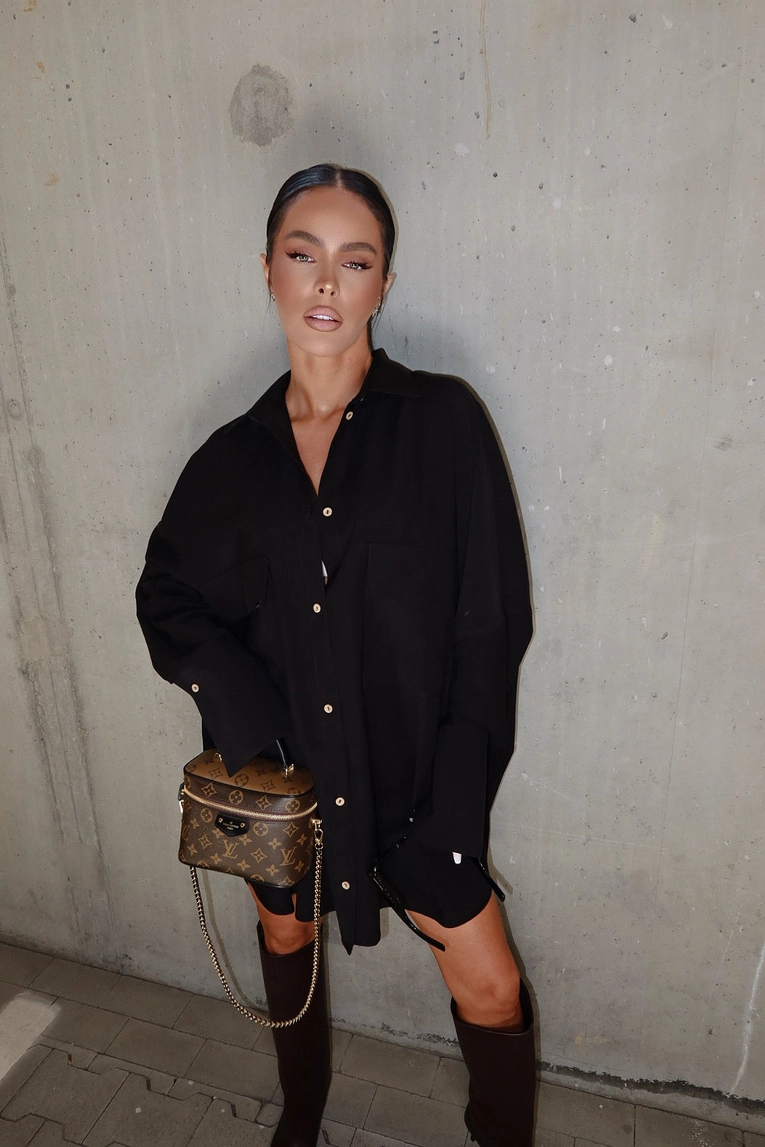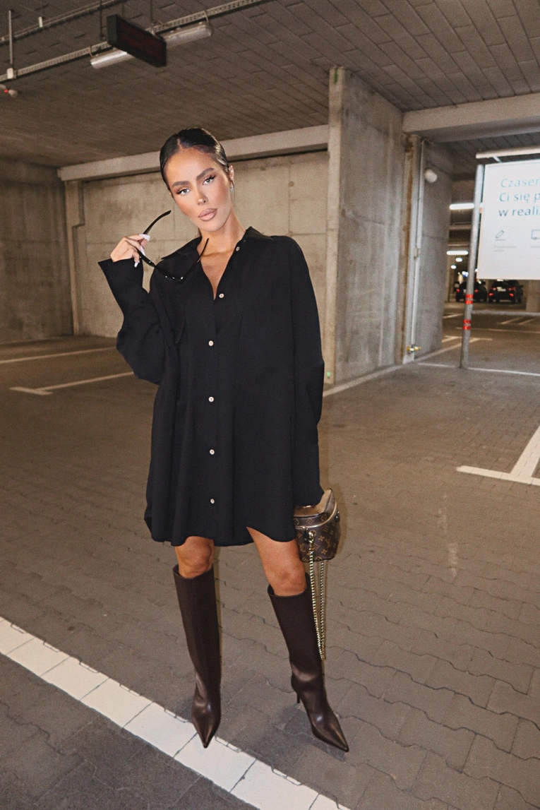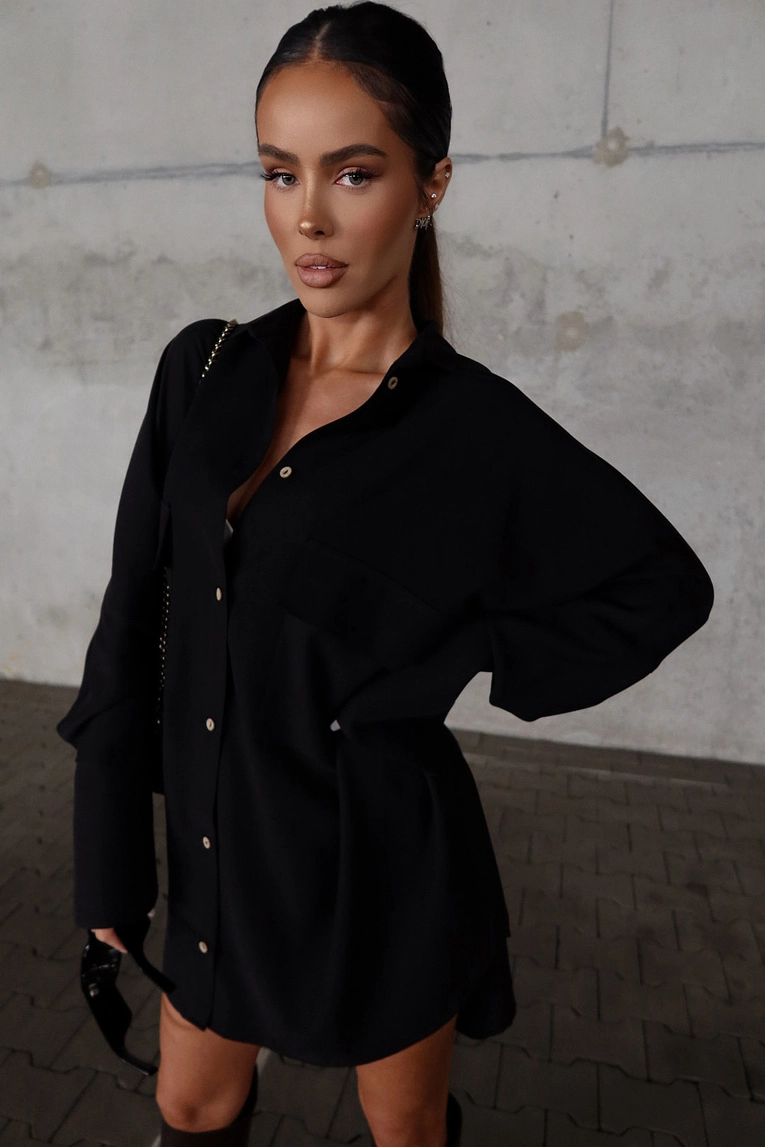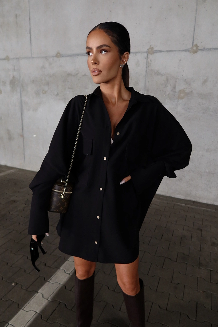 Nowoczesna, oversize’owa koszula o długości pozwalającej nosić ją również jako sukienkę. Luźny krój, obniżona linia ramion i szerokie rękawy z mankietami tworzą nonszalaną, ale bardzo stylową sylwetkę. Model zapinany na napy z przodu, z dużymi kieszeniami na biuście i minimalistyczną metką LAMANUEL. Świetnie wygląda zarówno solo, jak i narzucona na top czy dopasowane body. Idealna opcja na stylizację, która łączy luz z elegancją. Świetnie pasuje na każdą sylwetkę, nawet do rozmiaru XXL.Skład: 92% wiskoza 8% poliester