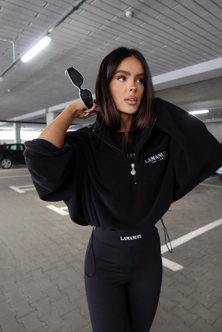 Oversize’owa bluza wykonana z grubszego, ciepłego polaru, który świetnie sprawdzi się w chłodniejsze dni. Materiał jest miękki, przyjemny w dotyku i dobrze trzyma ciepło. Model z krótkim zamkiem i wysokim kołnierzem, który możesz postawić lub odpiąć dla swobodniejszego looku. Z przodu i na plecach tonalny haft z logo LAMANUEL. Dół bluzy regulowany – można ją nosić luźno lub ściągnąć troczkiem. Dzięki uniwersalnemu, luźnemu krojowi pasuje również na sylwetki do XL.Skład: 95% bawełna 5% poliester
