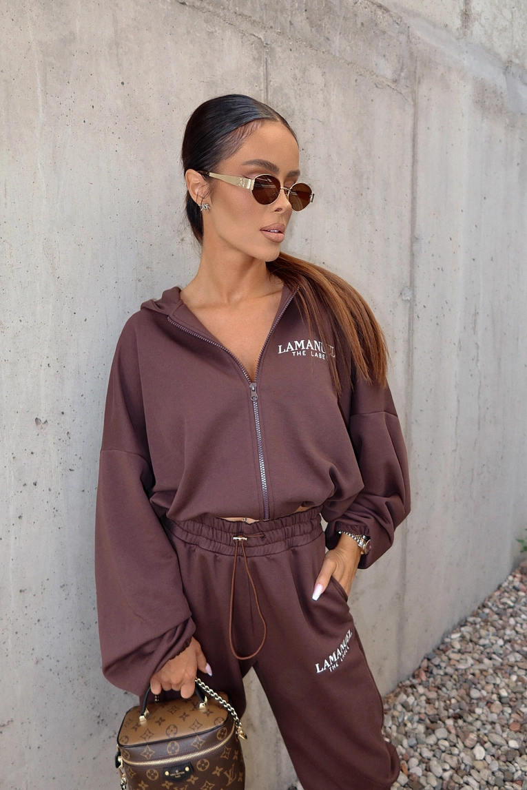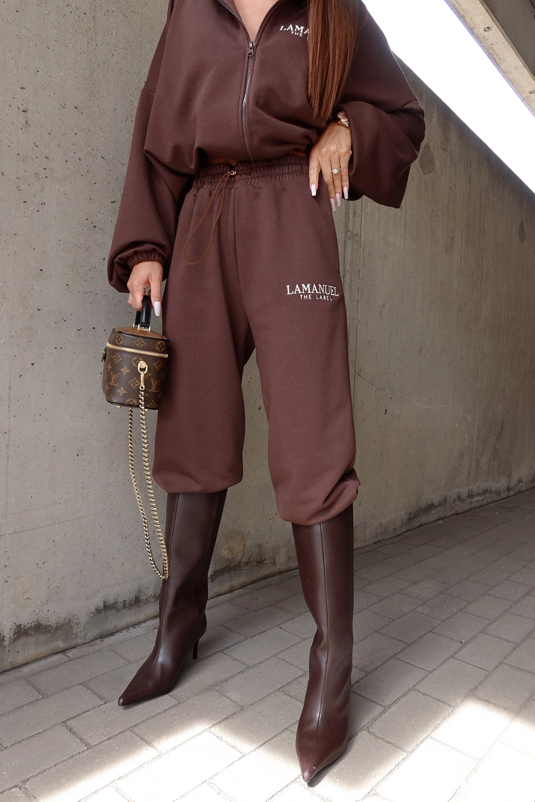 Szerokie spodnie dresowe, stylizowane na męskie z wysokim stanem i elastyczną gumką w pasie oraz dodatkowym troczkiem do regulacji. Szeroka, prosta nogawka i wygodny krój zapewniają komfort noszenia i swobodę ruchów. Na biodrze widoczne logo LAMANUEL, które spójnie komponuje się z bluza CLOUDY. tworząc kompletny, modny zestaw. Spodnie mimo, że są szerokie pasują idealnie od rozmiaru XS-XXL.Skład: 90% bawełna 10% poliester