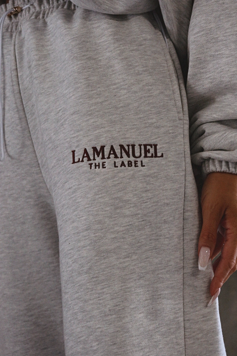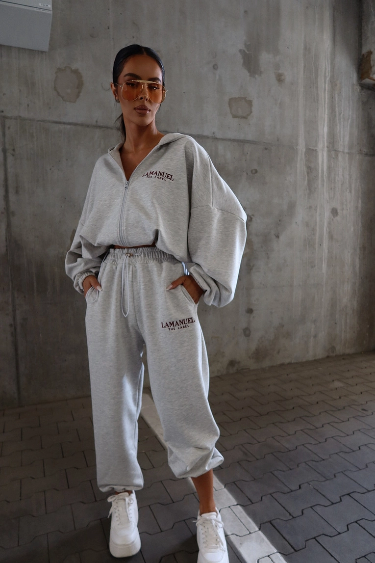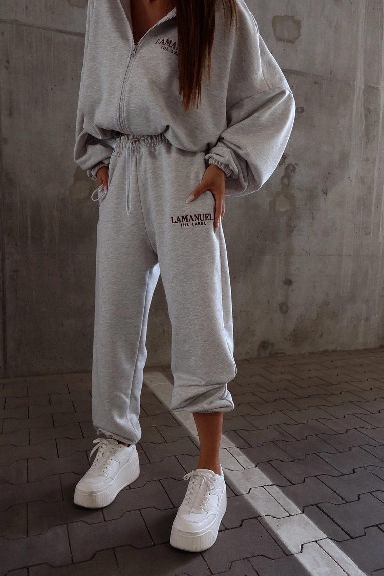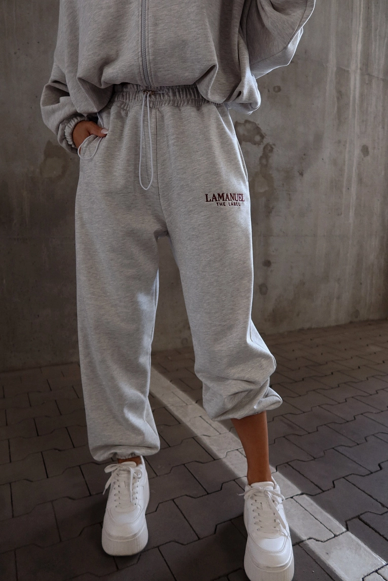 Szerokie spodnie dresowe, stylizowane na męskie z wysokim stanem i elastyczną gumką w pasie oraz dodatkowym troczkiem do regulacji. Szeroka, prosta nogawka i wygodny krój zapewniają komfort noszenia i swobodę ruchów. Na biodrze widoczne logo LAMANUEL, które spójnie komponuje się z bluza CLOUDY. tworząc kompletny, modny zestaw. Spodnie mimo, że są szerokie pasują idealnie od rozmiaru XS-XXL.Skład: 90% bawełna 10% poliester