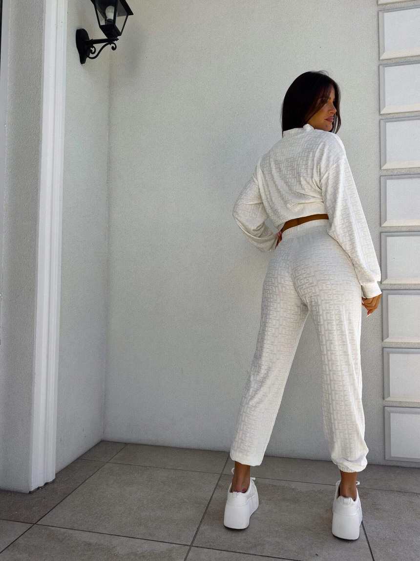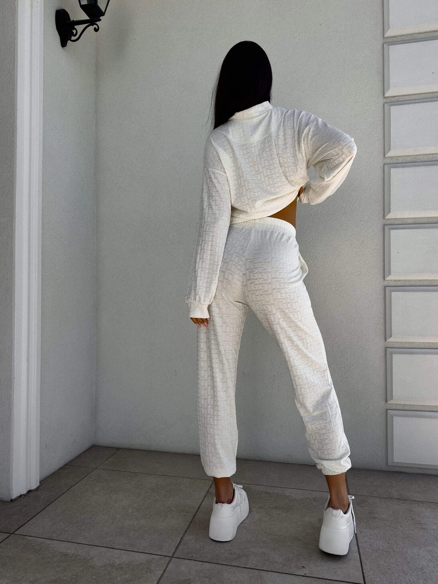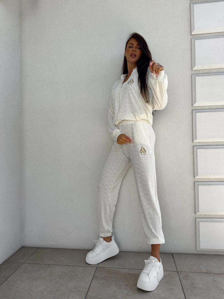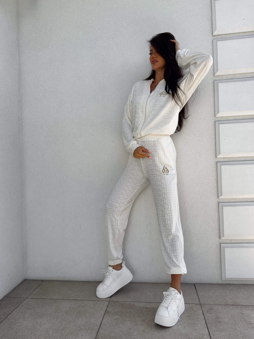 Komplet Artemis składa się z rozpinanej bluzy oraz spodni z elastyczną gumką w pasie i nogawkach, co zapewnia idealne dopasowanie i swobodę ruchów. Bluza wyposażona jest w praktyczny zamek błyskawiczny, a spodnie mają dwie funkcjonalne kieszenie, które pomieszczą niezbędne drobiazgi. Całość wyróżniają subtelne haftowane logowania.