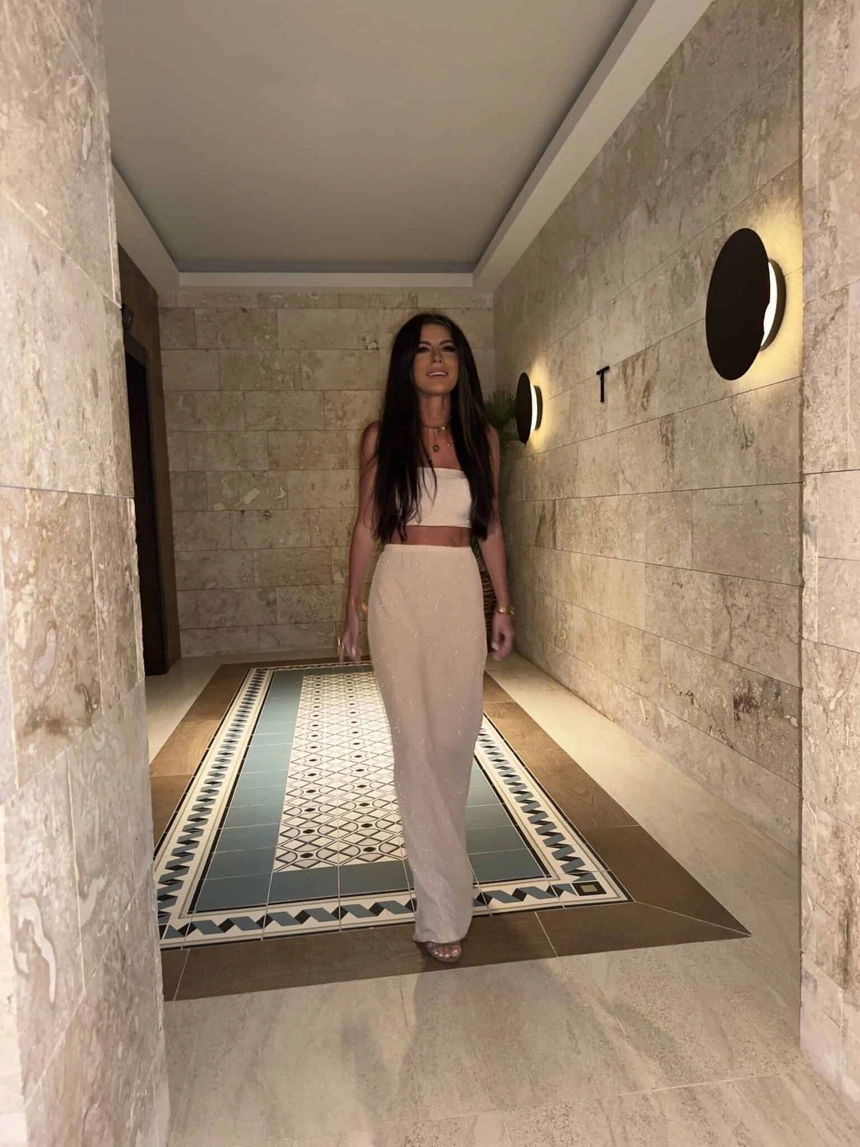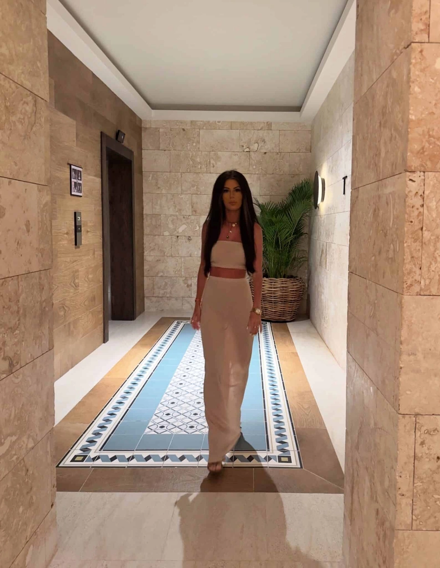 Komplet top typu opaska oraz spódnica maxi z rozcięciem to elegancka i modna propozycja, idealna na wieczorne wyjścia lub specjalne okazje. Top ma wygodną formę opaski, zakończoną gumką, co zapewnia komfort noszenia i doskonale dopasowuje się do sylwetki. Spódnica maxi z wysokim stanem posiada efektowne rozcięcie, które dodaje całości zmysłowego charakteru, a gumka w pasie gwarantuje wygodę i idealne dopasowanie. Całość wykonana z materiału brokatowego, który tworzy efektowny look, przyciągając wzrok i nadając stylizacji elegancki i błyszczący akcent.
