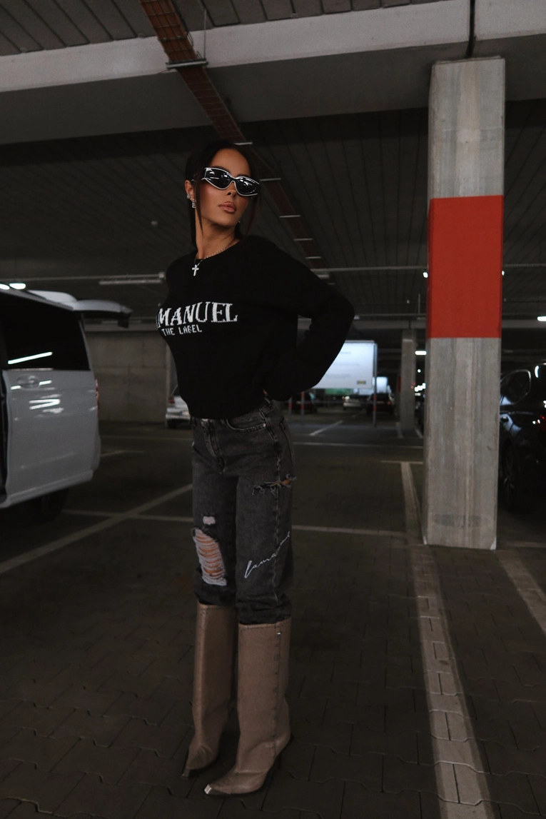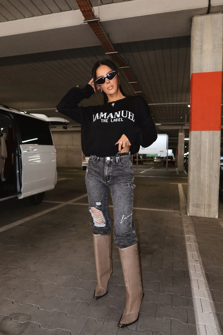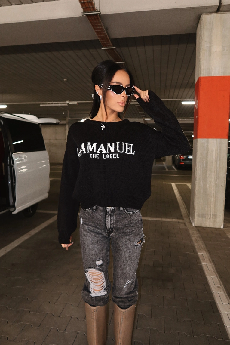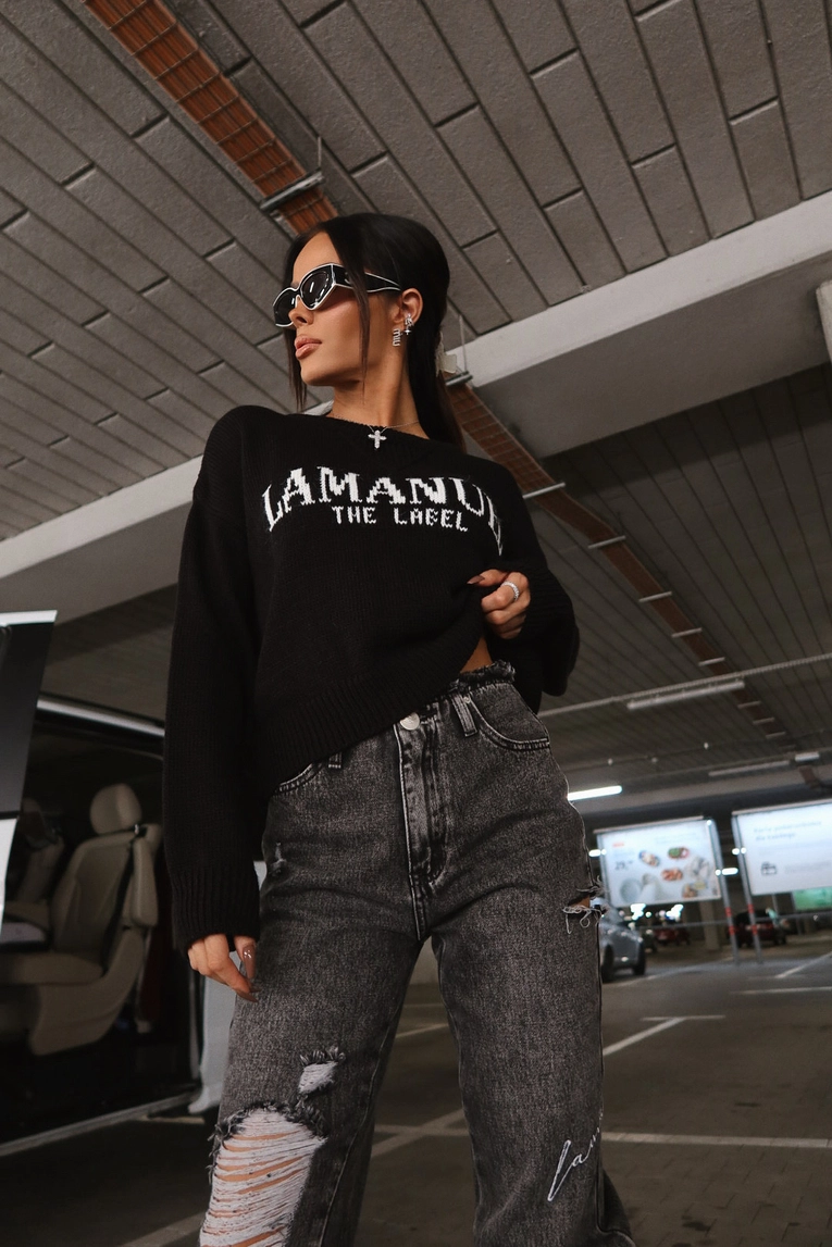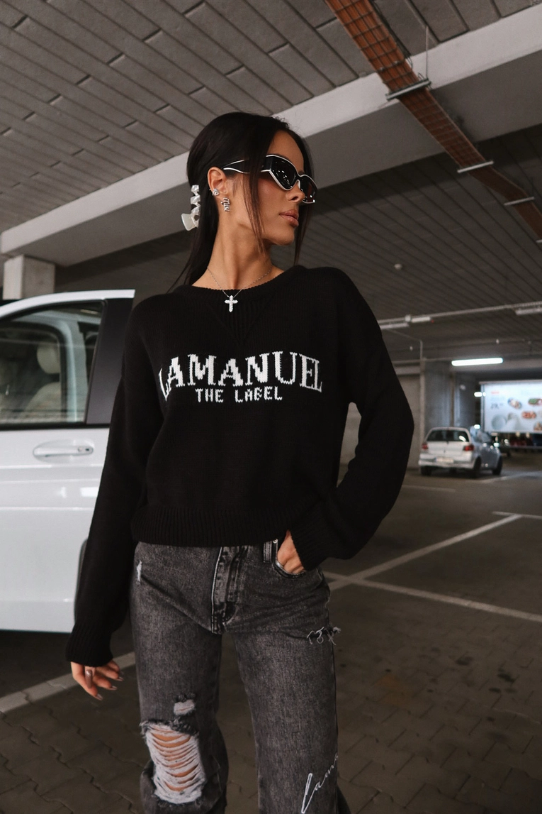 Luźny, dzianinowy sweter z dużym logo, który łączy wygodę z wyrazistym stylem. Obniżona linia ramion i miękka struktura materiału nadają mu nonszalancki charakter. Idealny do miejskich, codziennych stylizacji — wygląda świetnie zarówno z szortami, jak i ulubionymi jeansami.Skład: 85% akryl 15% nylon