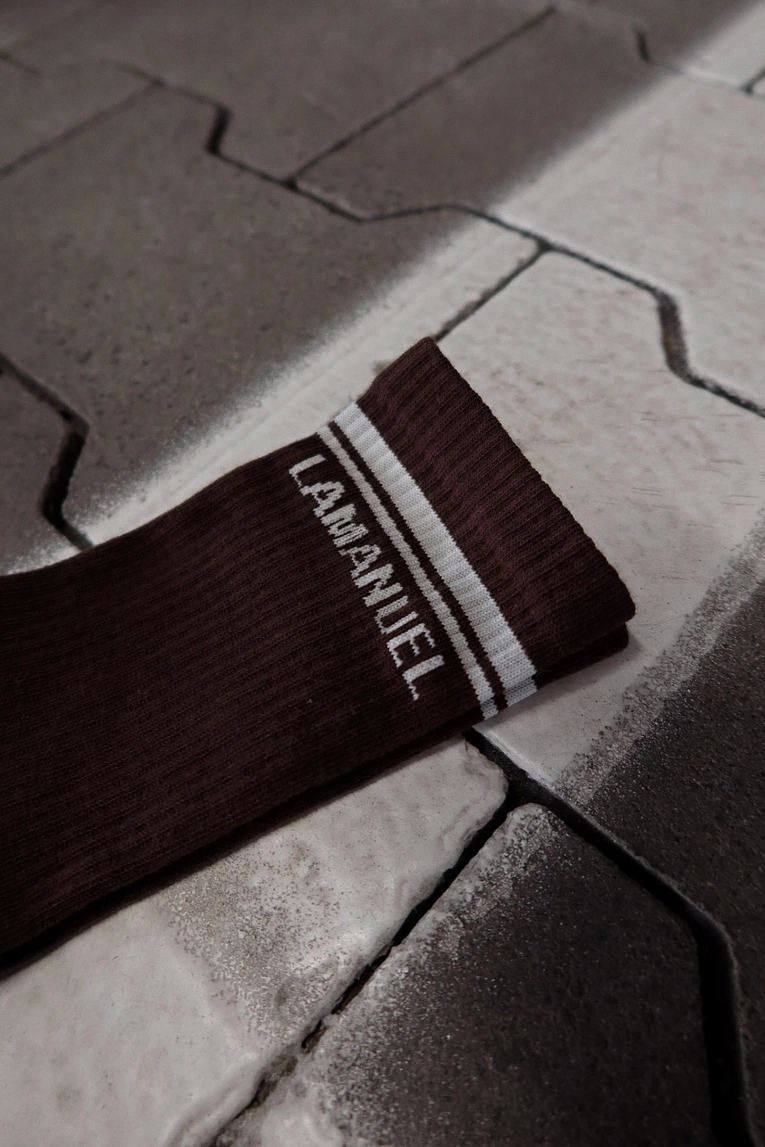 Sportowy vibe w miejskim wydaniu. Klasyczne, prążkowane skarpety z logo LA MANUEL, które idealnie dopełnią look ze sneakersami, workerami albo klapkami. Must-have dla fanek stylu streetwearowego i detali z charakterem.Pasują od rozmiaru 36-42