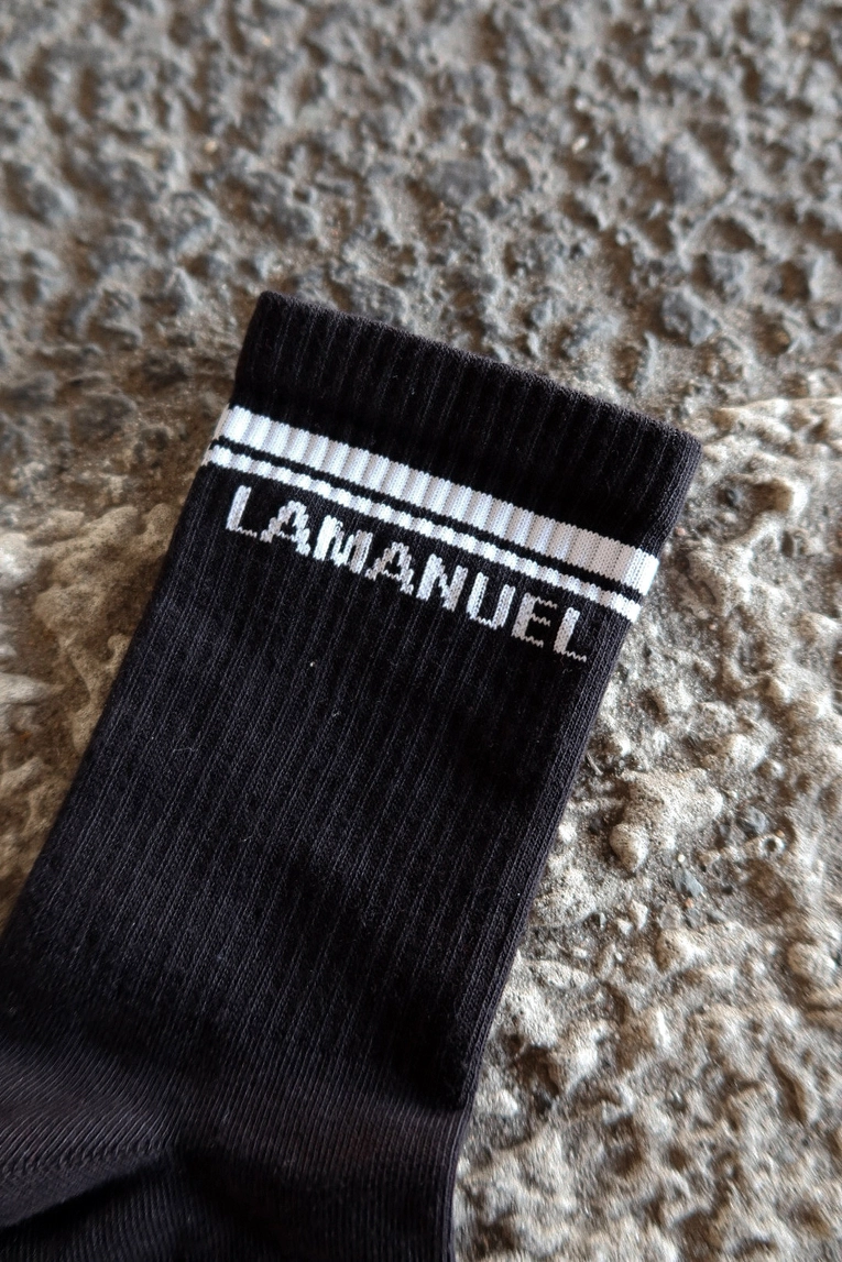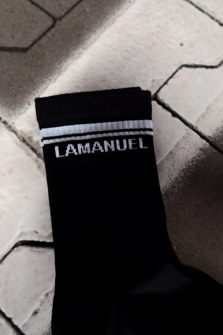 Sportowy vibe w miejskim wydaniu. Klasyczne, prążkowane skarpety z logo LA MANUEL, które idealnie dopełnią look ze sneakersami, workerami albo klapkami. Must-have dla fanek stylu streetwearowego i detali z charakterem.Pasują od rozmiaru 36-42