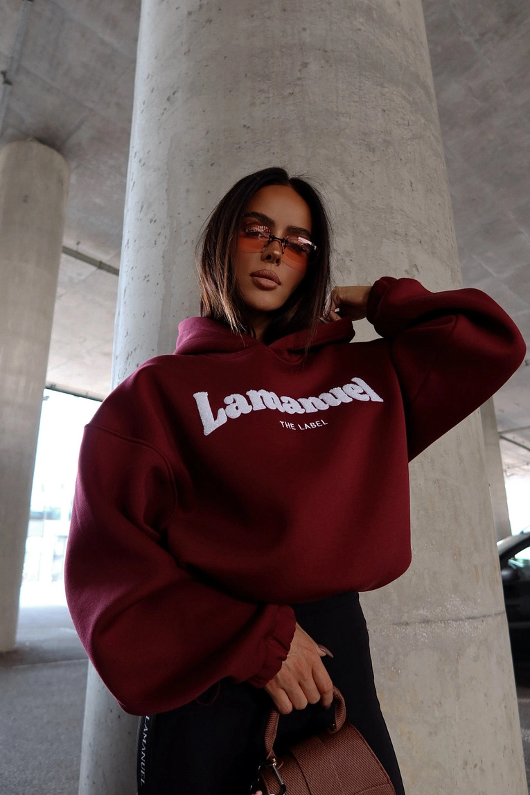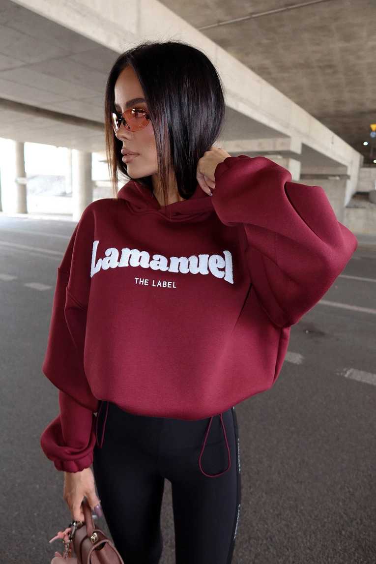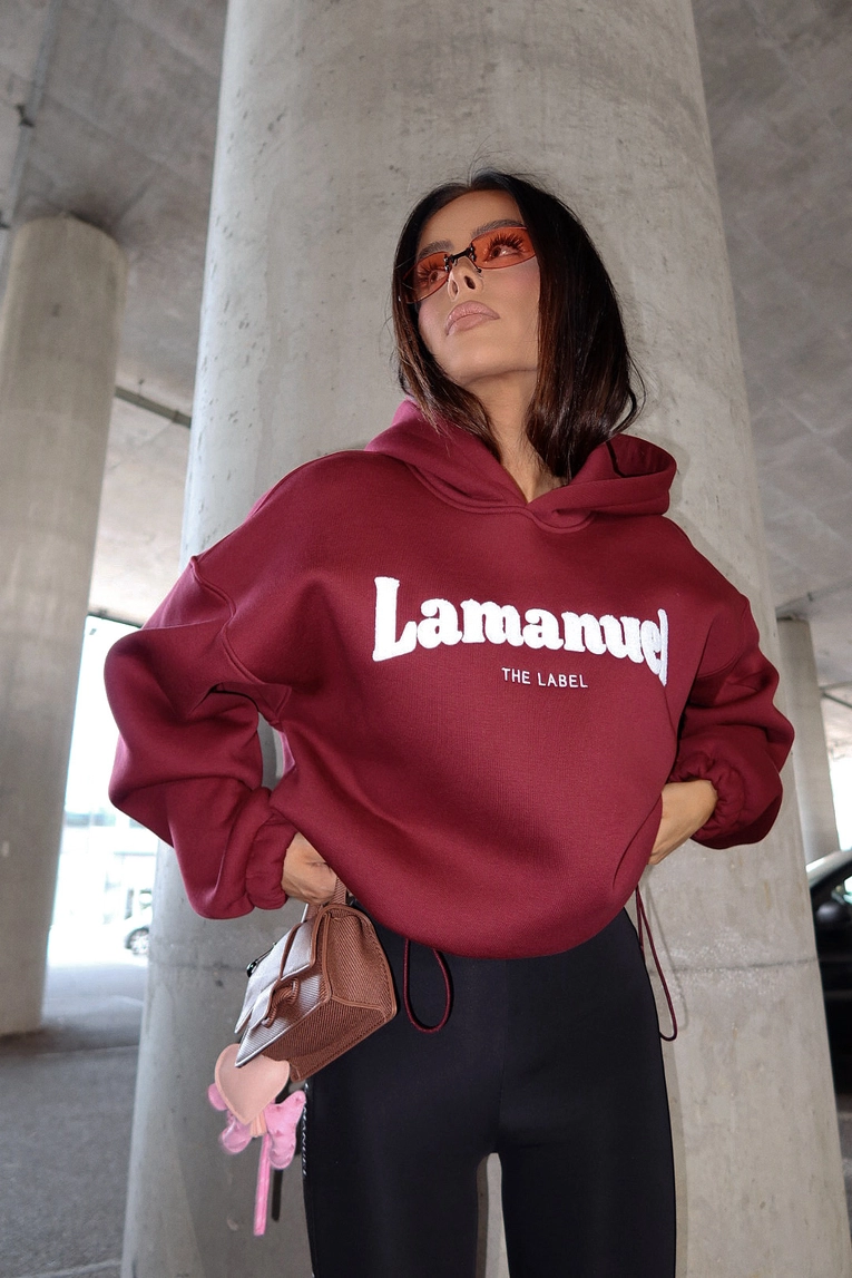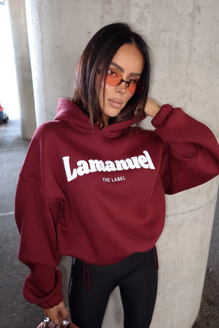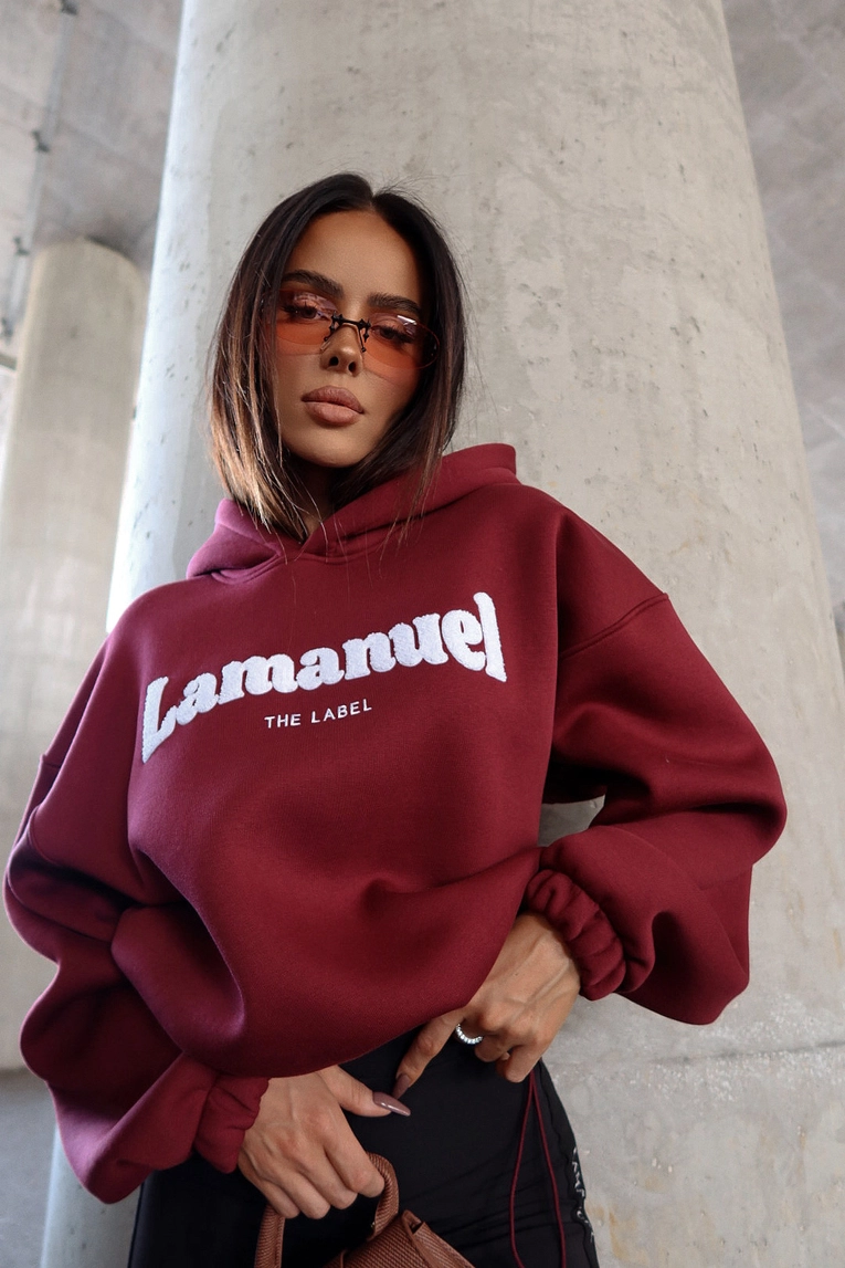 Miękka, przytulna bluza z efektownym logo Lamanuel wykonanym z puszystego szenilu – ten detal od razu przyciąga spojrzenia. Oversize'owy fason zapewnia luz i komfort, a dzięki regulacji w talii na troczek możesz dopasować ją do swojej sylwetki – luźno, dopasowanie, jak lubisz. Must-have w szafie każdej miłośniczki stylu streetwear z twistem premium.Skład: 90% bawełna 10% poliester