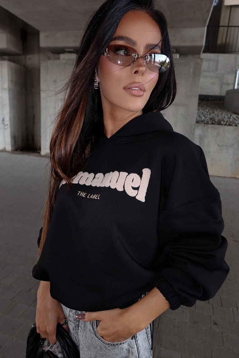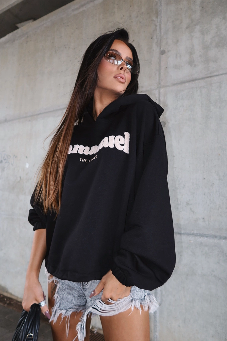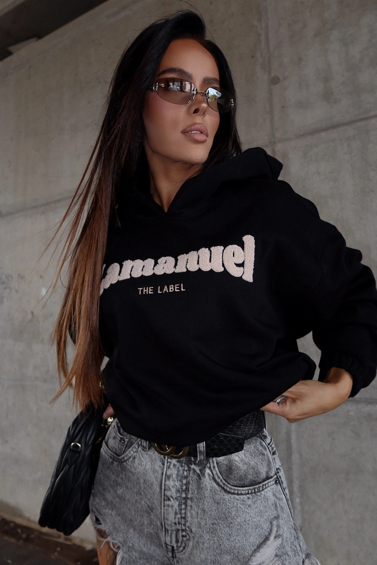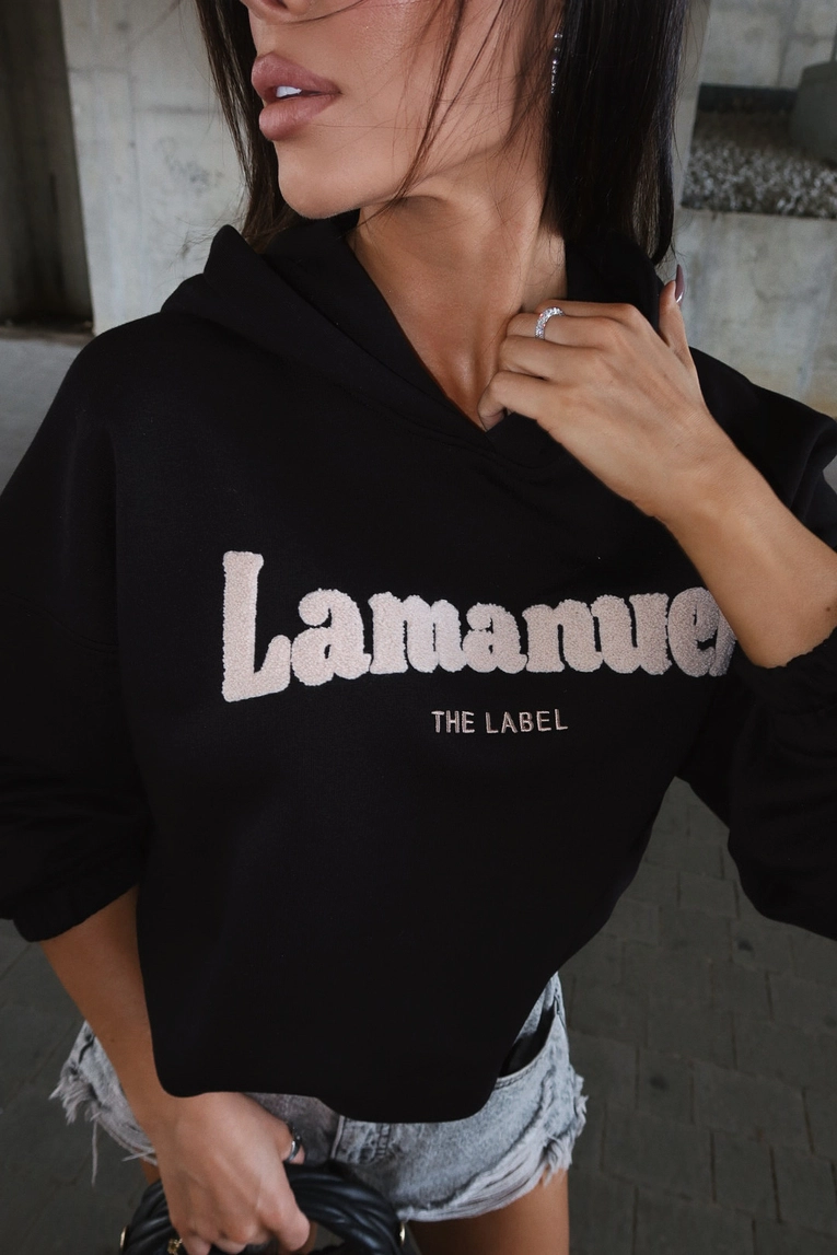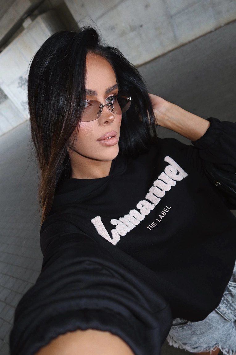 Miękka, przytulna bluza z efektownym logo Lamanuel wykonanym z puszystego szenilu – ten detal od razu przyciąga spojrzenia. Oversize'owy fason zapewnia luz i komfort, a dzięki regulacji w talii na troczek możesz dopasować ją do swojej sylwetki – luźno, dopasowanie, jak lubisz. Must-have w szafie każdej miłośniczki stylu streetwear z twistem premium.Skład: 90% bawełna 10% poliester