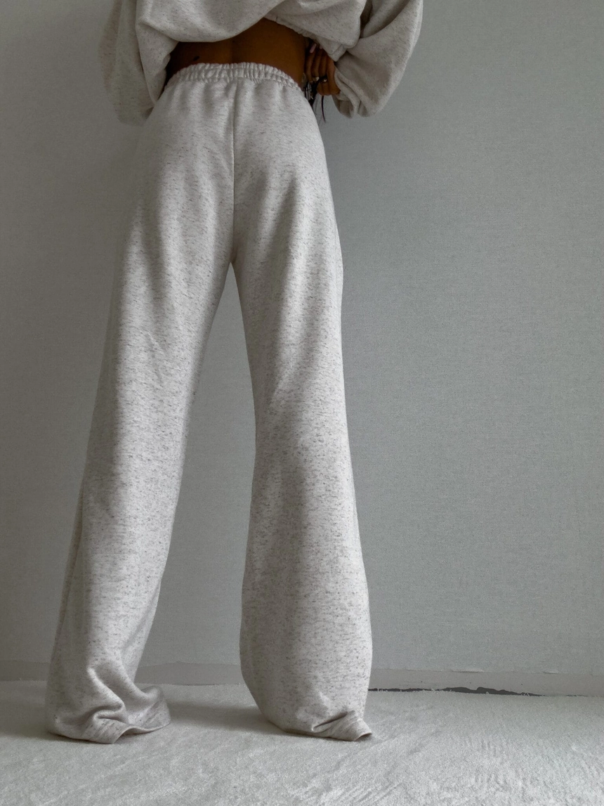 Luźne spodnie dresowe z szerokimi nogawkami to idealne połączenie komfortu i swobodnego stylu. Wykonane z miękkiego materiału, mają prosty krój i szerokie nogawki, które zapewniają maksymalną wygodę i pełną swobodę ruchów. W pasie znajduje się elastyczna gumka, dzięki której spodnie dopasowują się do sylwetki, nie uciskając. Dodatkowym detalem jest subtelna metka z napisem „By Me” przyszyta centralnie na gumce, podkreślająca unikatowy charakter produktu.