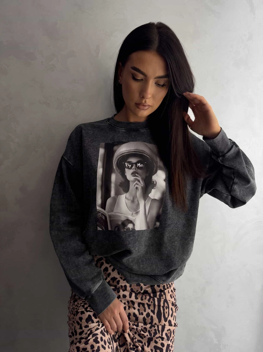 Stylowa bluza o swobodnym kroju, wykonana z miękkiej, dekatyzowanej bawełny, która nadaje jej unikalny, lekko sprany wygląd. Zakładana przez głowę, długie rękawy zapewniają komfort noszenia, a nadruk z przodu dodaje charakterystycznego akcentu. Idealna na co dzień – do jeansów, dresów czy szortów.