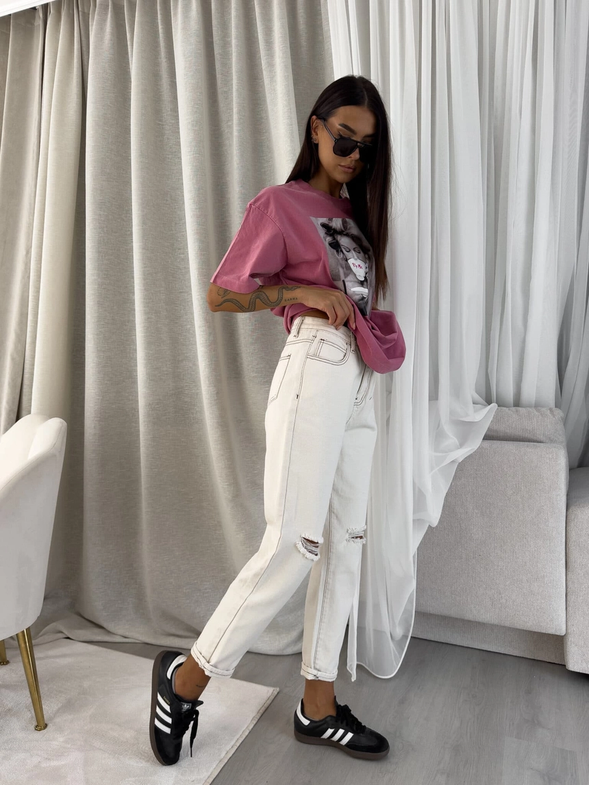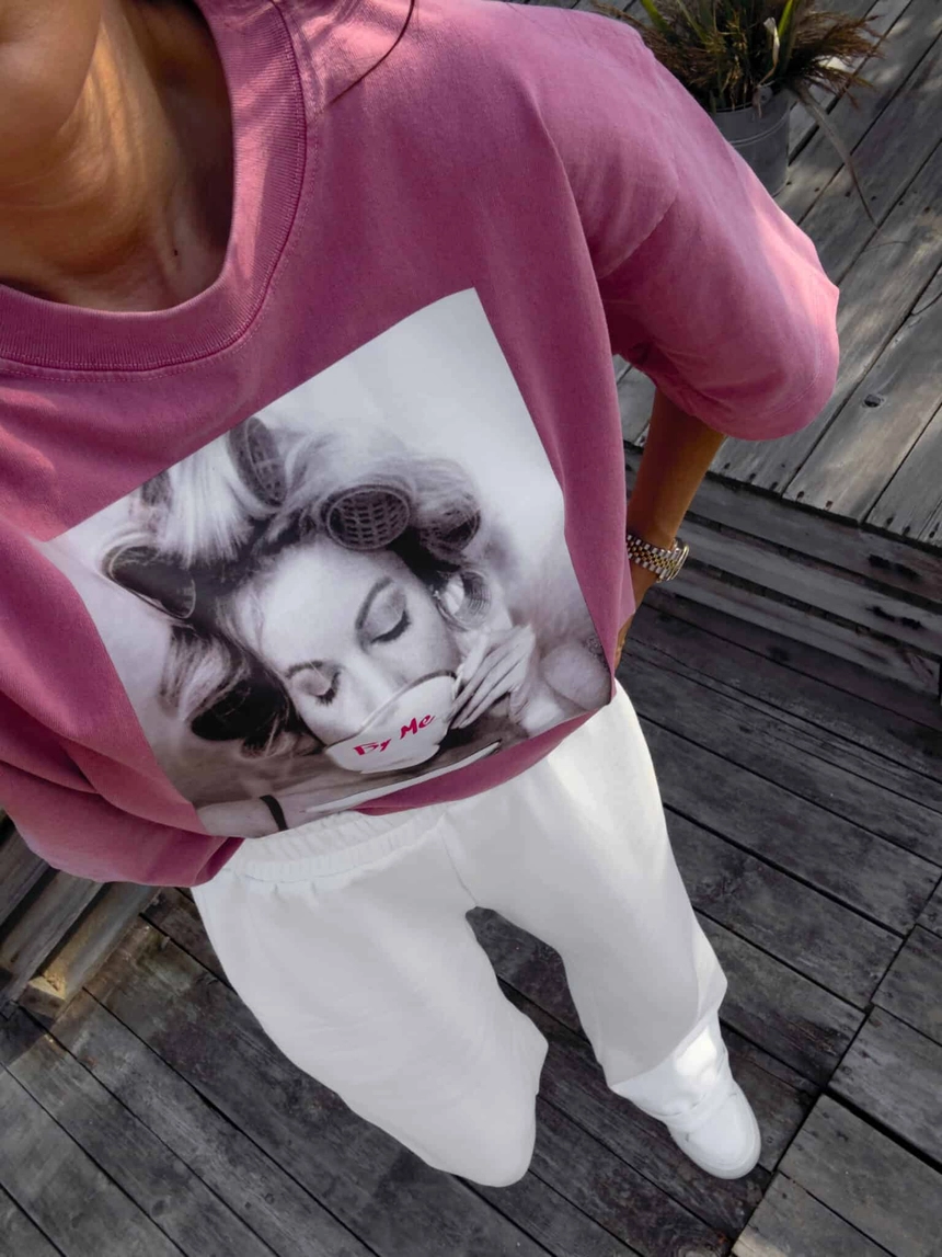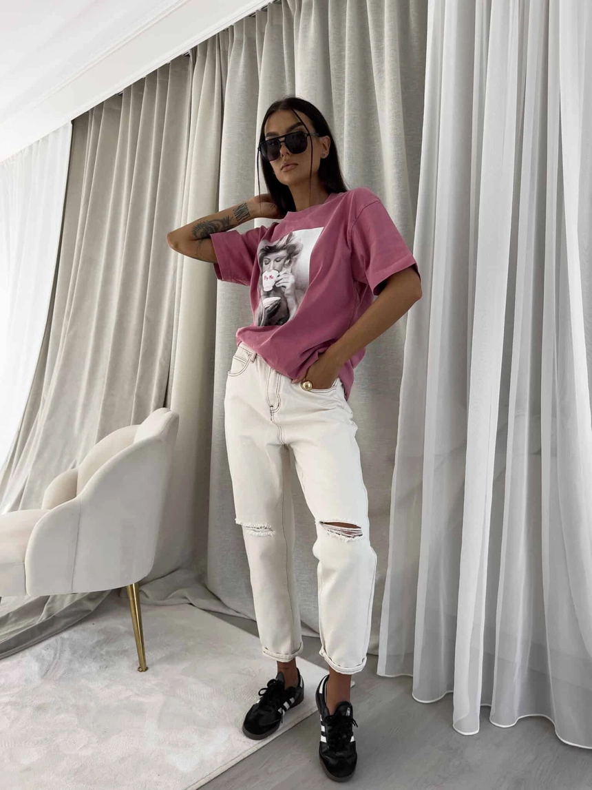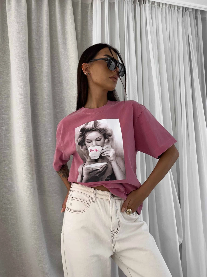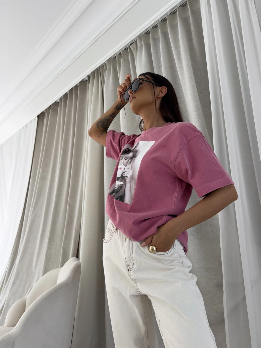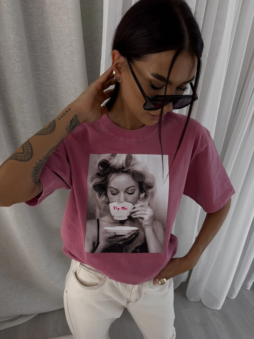 Dekatyzowany t-shirt ROLLER - brudny róż