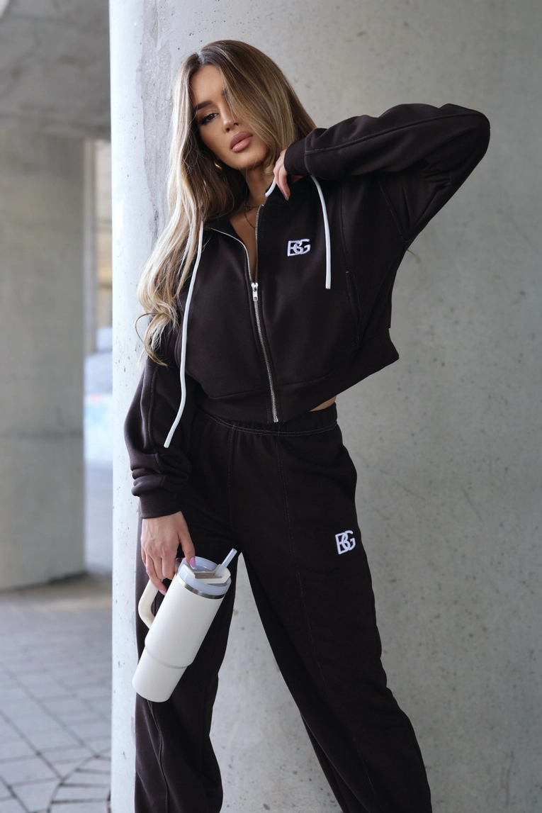 Opis produktu: Bluza damska BG WHITE z wysokiej jakości bawełny nieocieplanej. Bluza rozpinana z wyhaftowanym logo marki na piersi w kolorze białym. Bluza wykończona ściągaczami, zapinana na metalowy suwak. Posiada kieszenie oraz kaptur ze sznurkiem. Ozdobne białe przeszycia.