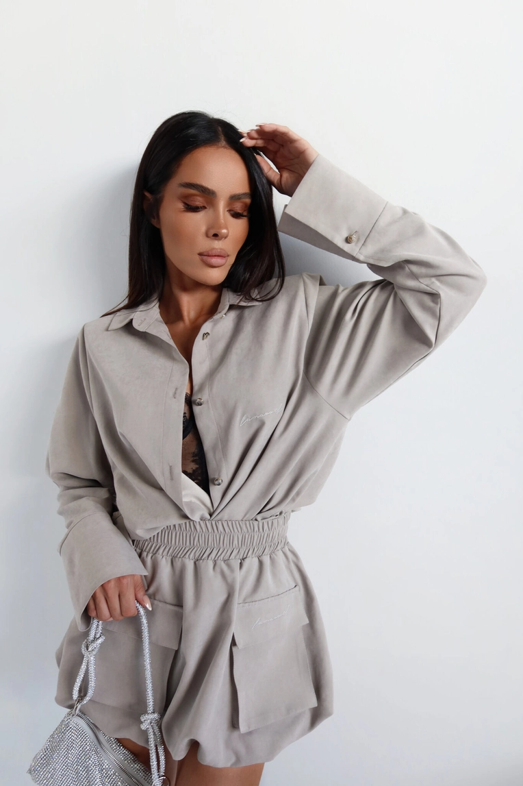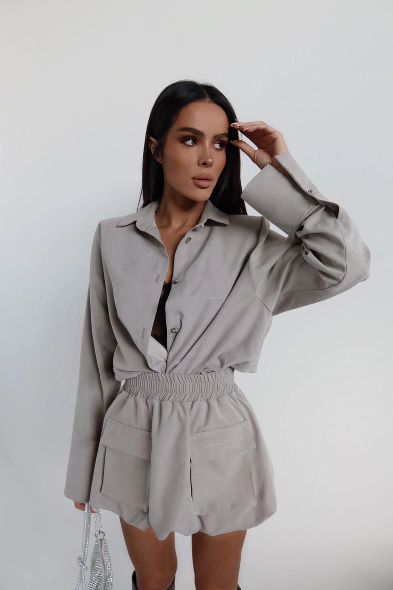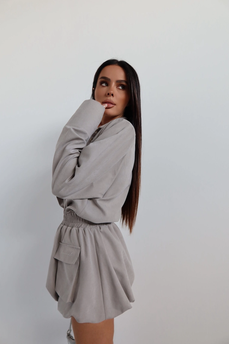 Spódnica o objętościowym fasonie bombki, który pięknie układa się na sylwetce i tworzy efekt miękkiej struktury. Model z wszytą szeroką gumką wewnątrz pasa, która podkreśla talię i zapewnia wygodę noszenia. Po bokach duże kieszenie z patkami i haftem LAMANUEL. Lekko sztywniejszy materiał nadaje formie sprężystości, a luźniejszy krój świetnie kontrastuje z dopasowaną górą. Styl street z nutą kobiecego twistu.Skład: 90% poliester 10% nylon
