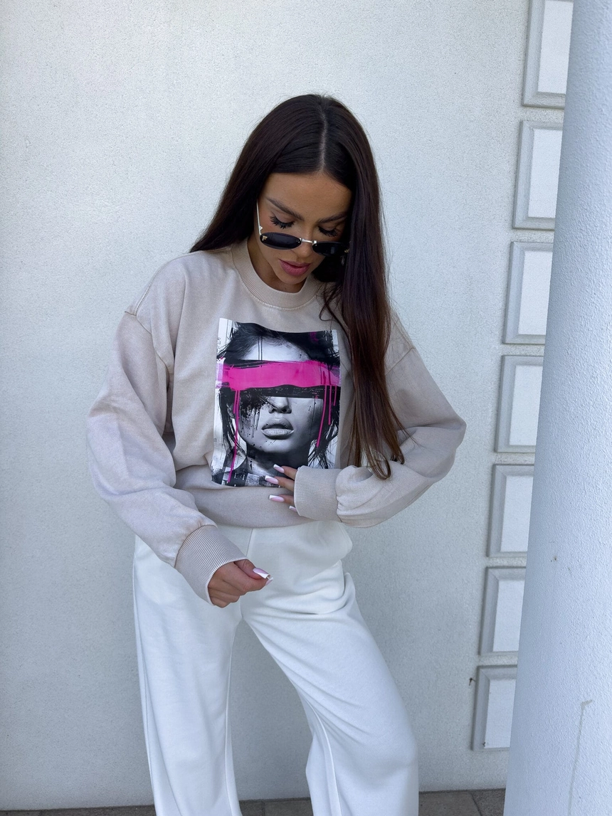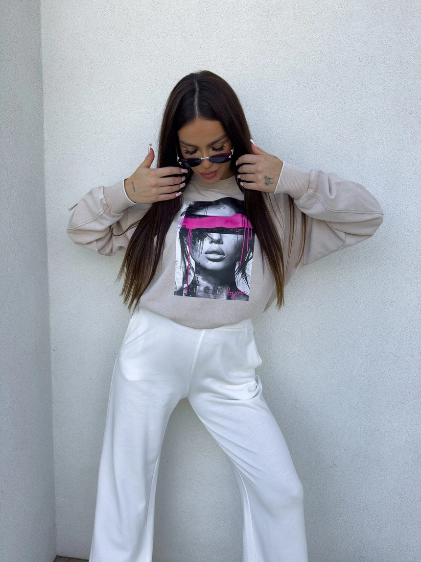 Stylowa bluza o swobodnym kroju, wykonana z miękkiej, dekatyzowanej bawełny, która nadaje jej unikalny, lekko sprany wygląd. Zakładana przez głowę, długie rękawy zapewniają komfort noszenia, a nadruk z przodu dodaje charakterystycznego akcentu. Idealna na co dzień – do jeansów, dresów czy szortów.