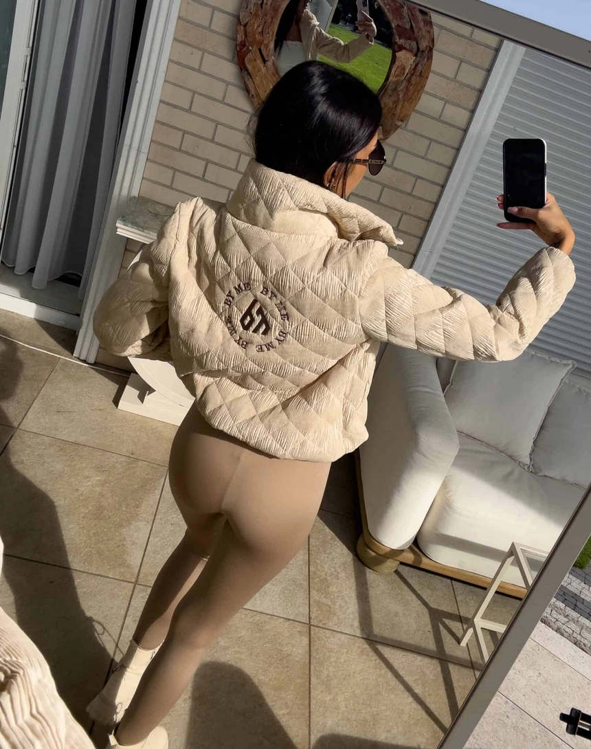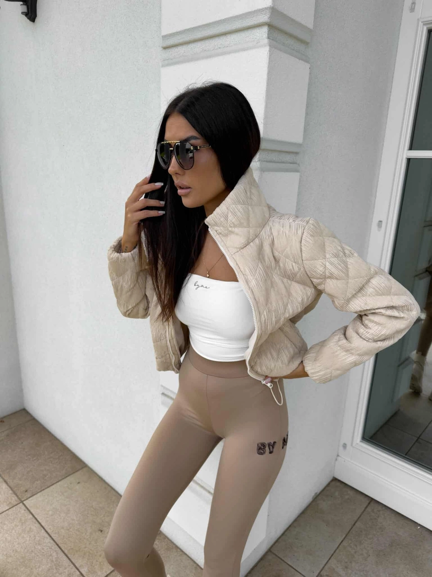 Krótka kurtka z pikowanego materiału.
